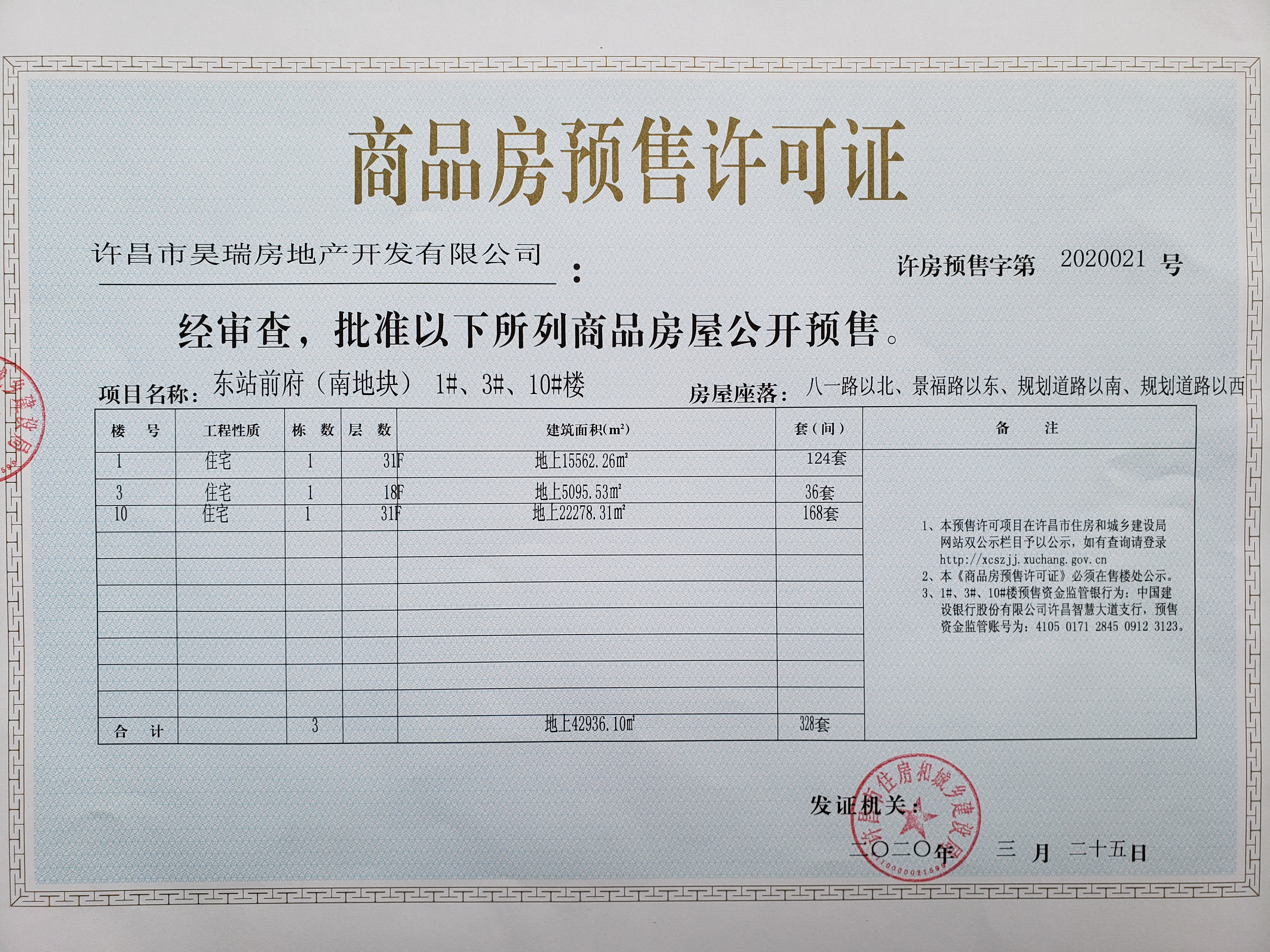 许房预售字第2020021号(许昌市昊瑞房地产开发有限公司)