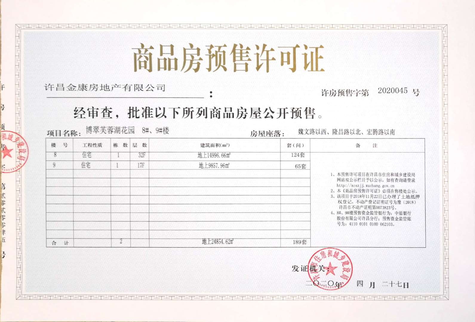 许房预售字第2020045号(许昌金康房地产有限公司)