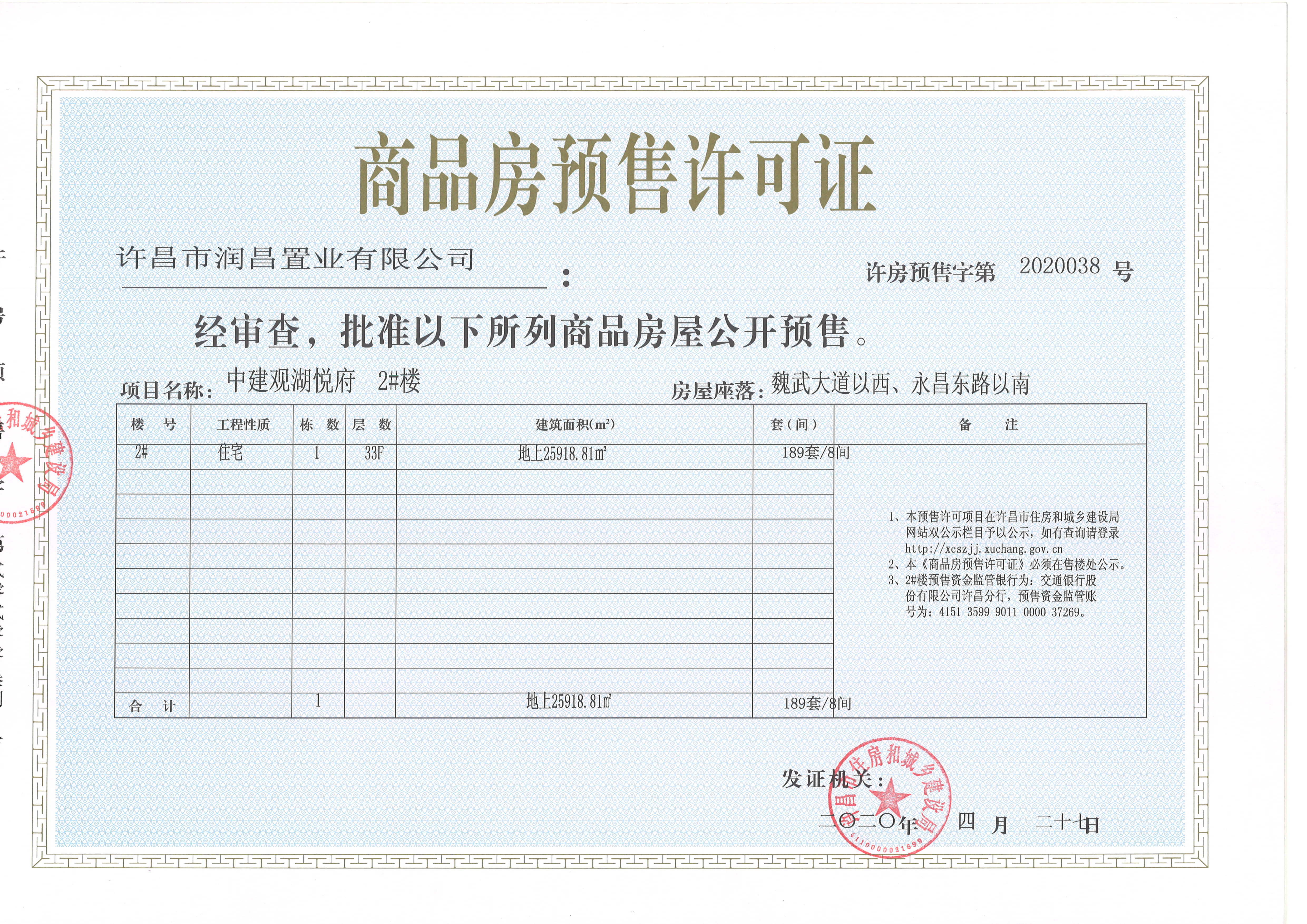 许房预售字第2020038号(许昌市润昌置业有限公司)