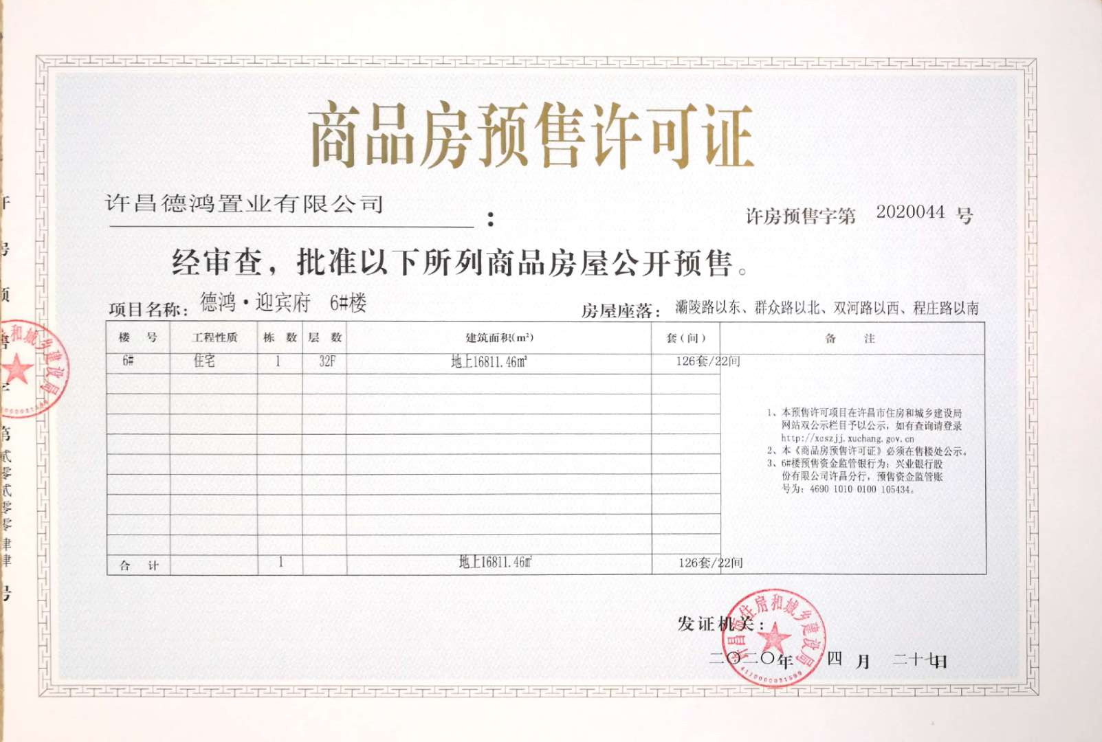 许房预售字第2020044号(许昌宏德置业有限公司)