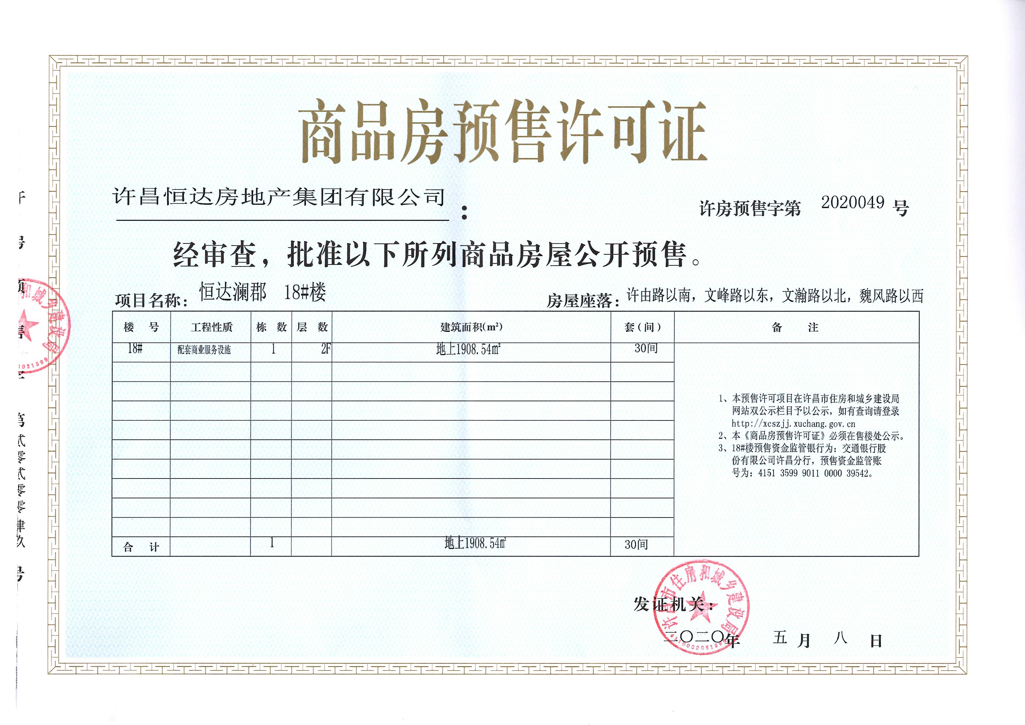 许房预售字第2020049号(许昌恒达房地产集团有限公司)