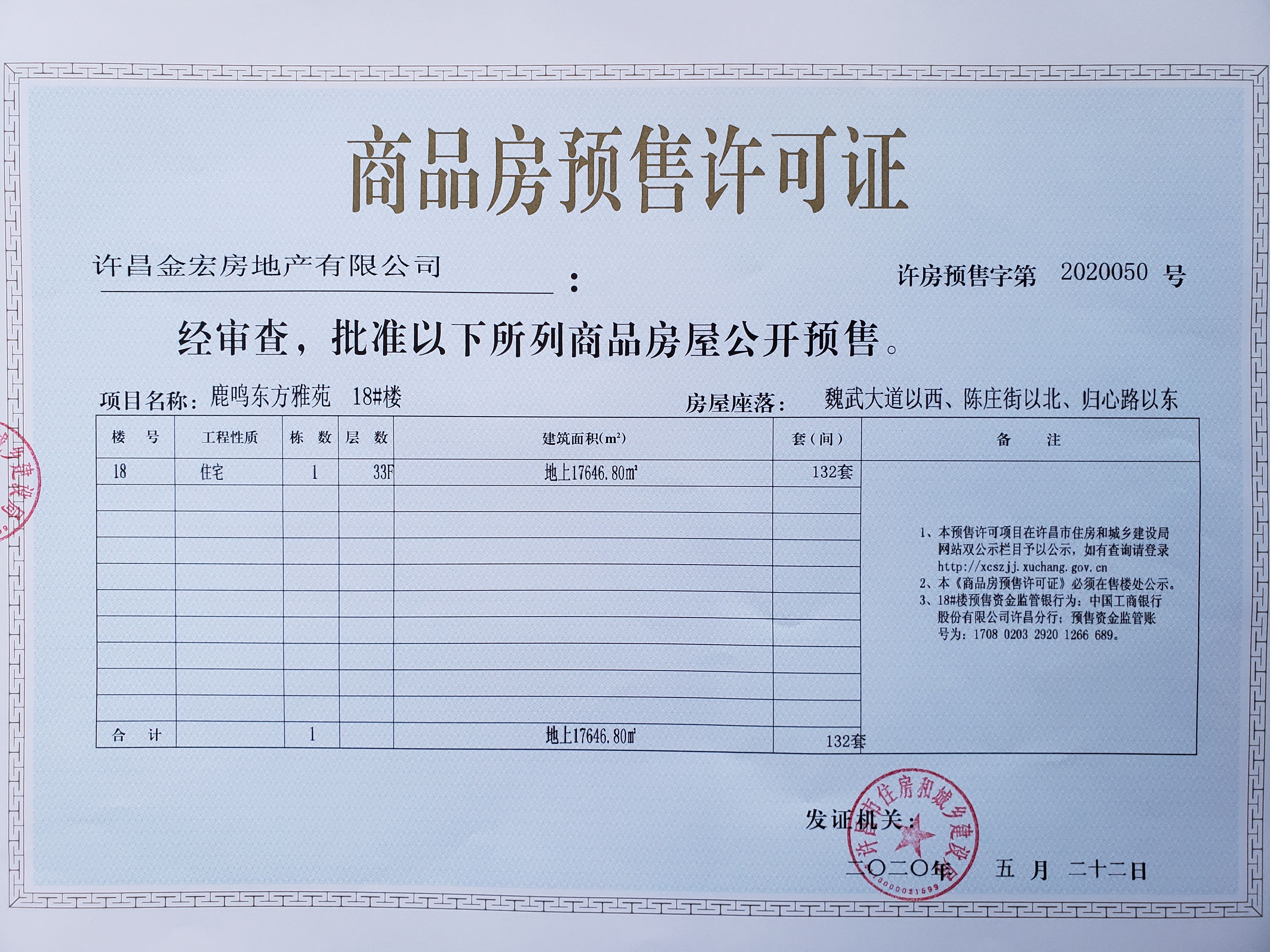 许房预售字第202050号(许昌金宏房地产有限公司)