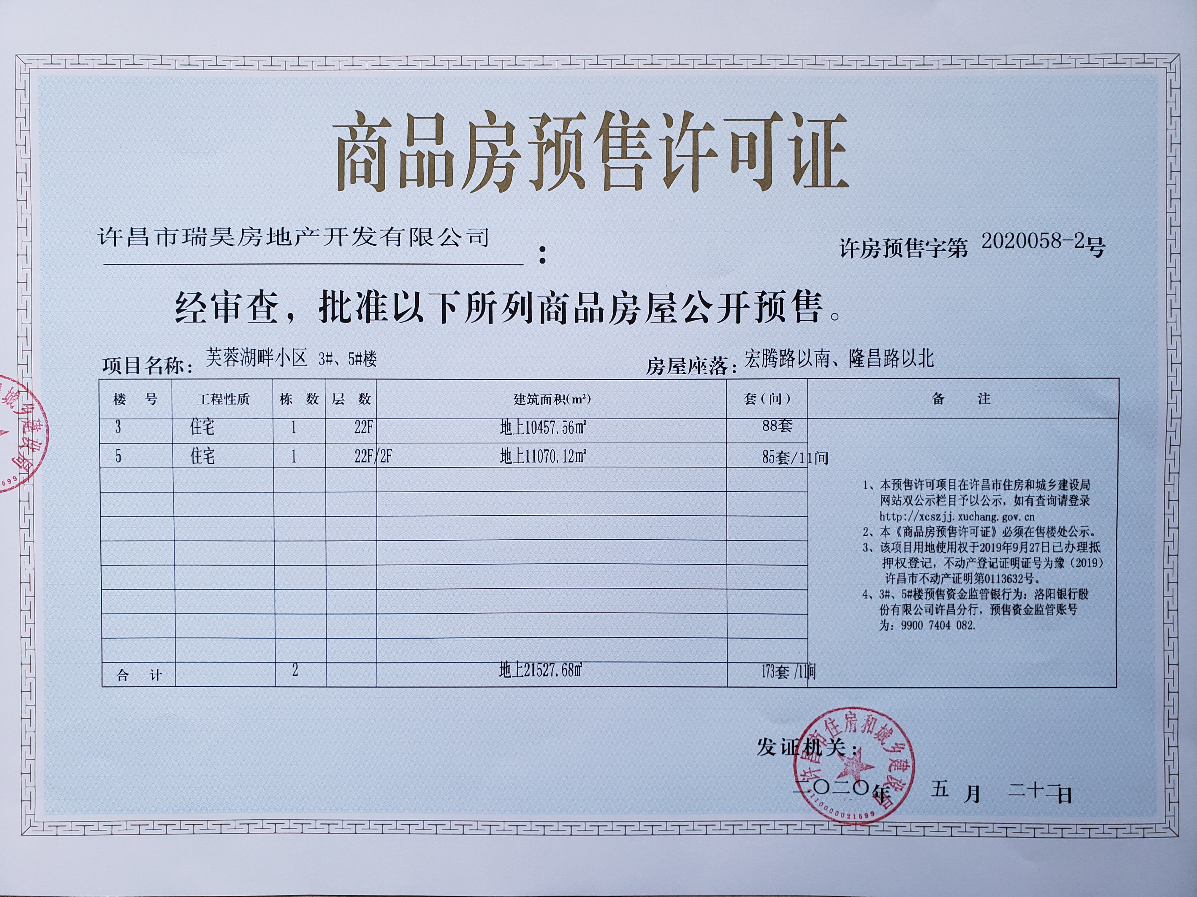 许房预售字第2020058-2号(许昌市瑞昊房地产开发有限公司)