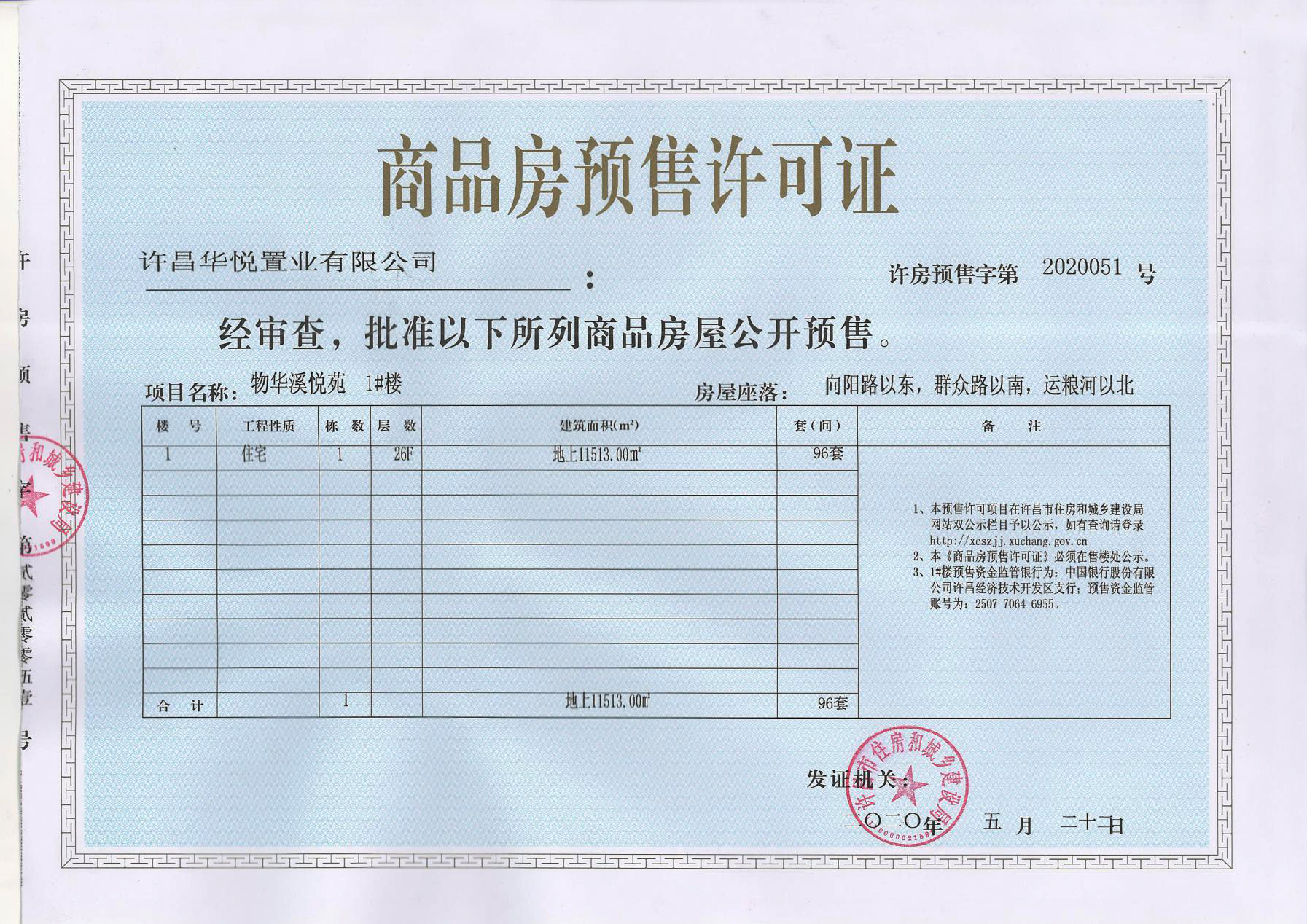 许房预售字第2020051号(许昌华悦置业有限公司)