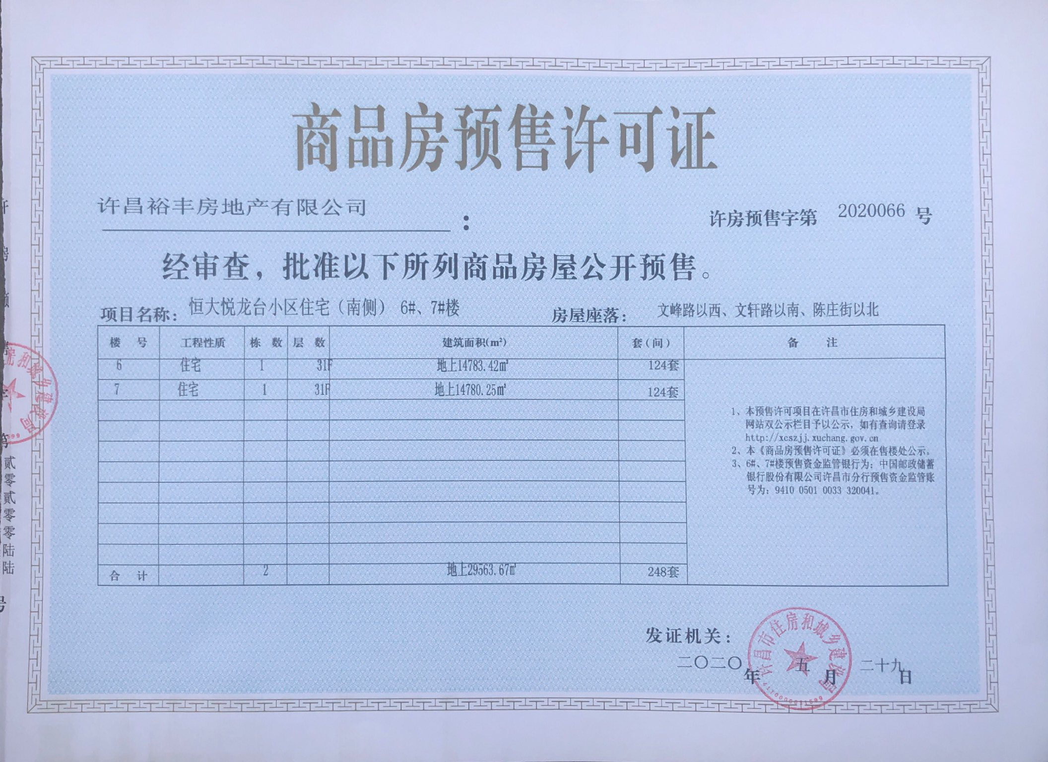 许房预售字第2020066号(许昌裕丰房地产有限公司)