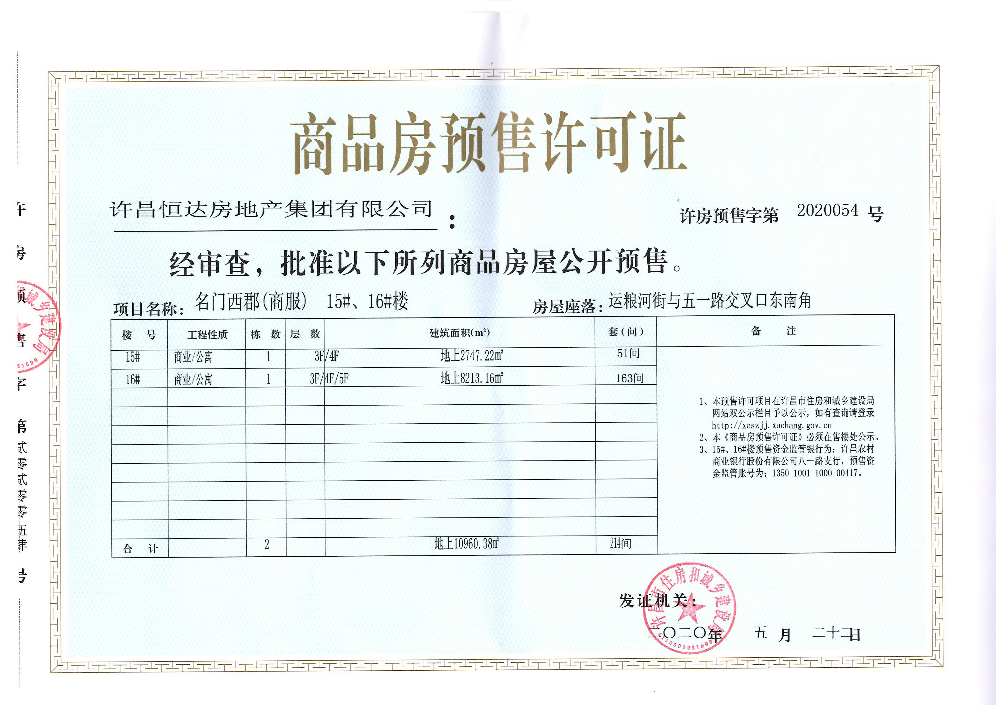 许房预售字第2020054号(许昌恒达房地产集团有限公司)