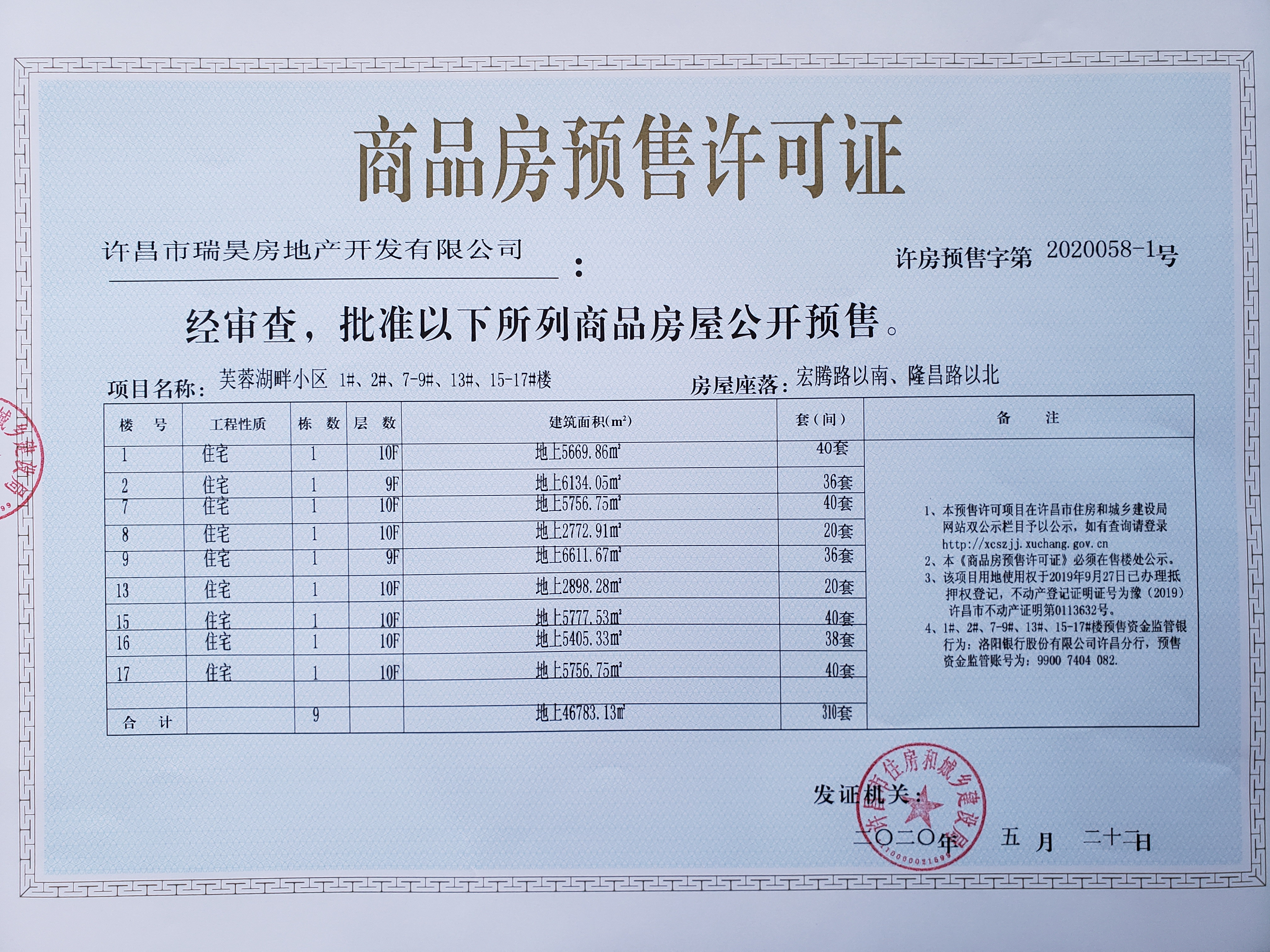 许房预售字第2020058-1号(许昌市瑞昊房地产开发有限公司)