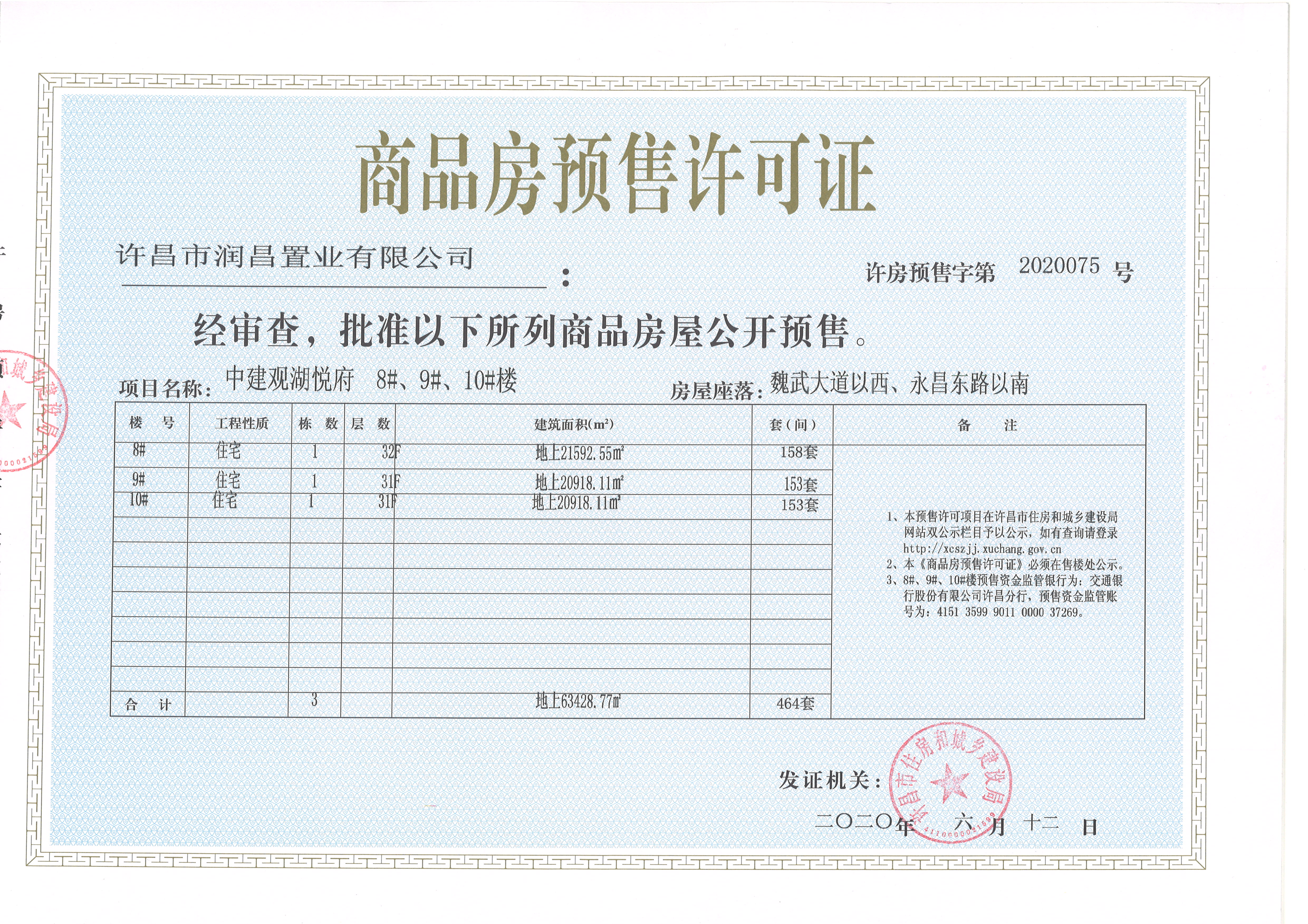 许房预售字第2020075号(许昌市润昌置业有限公司)