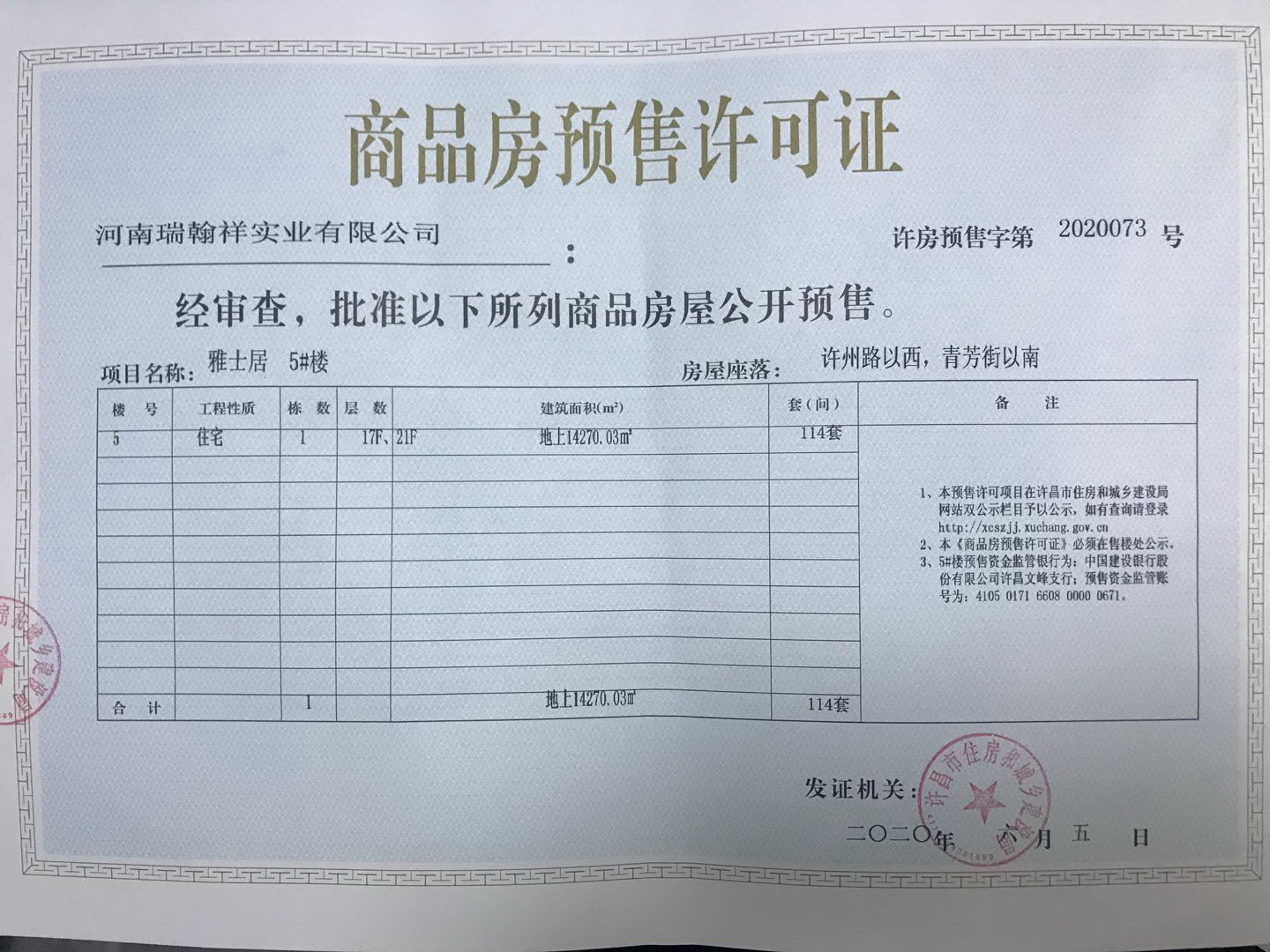 许房预售字第2020073号(河南瑞翰祥实业有限公司)