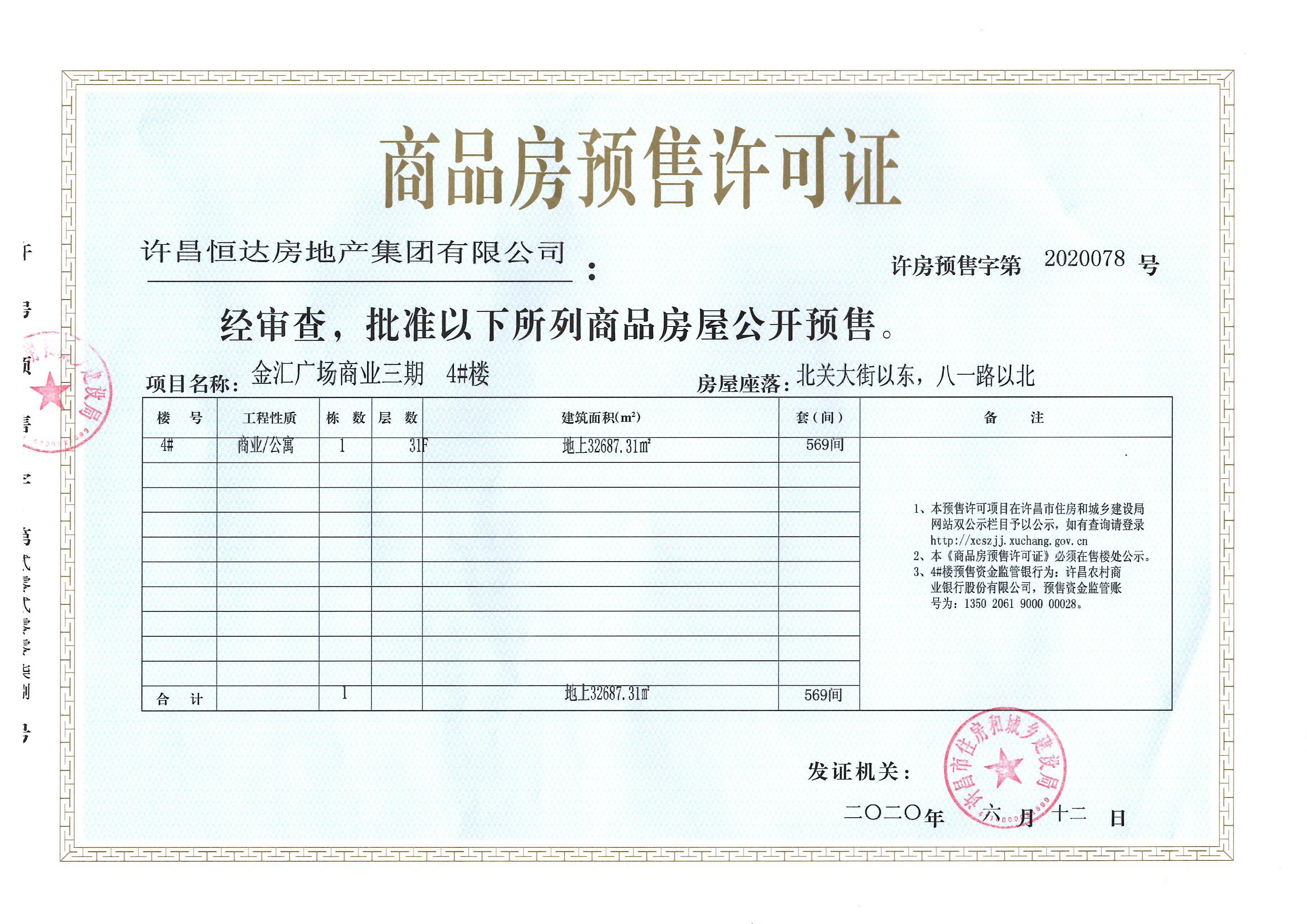 许房预售字第2020078号(许昌恒达房地产集团有限公司)