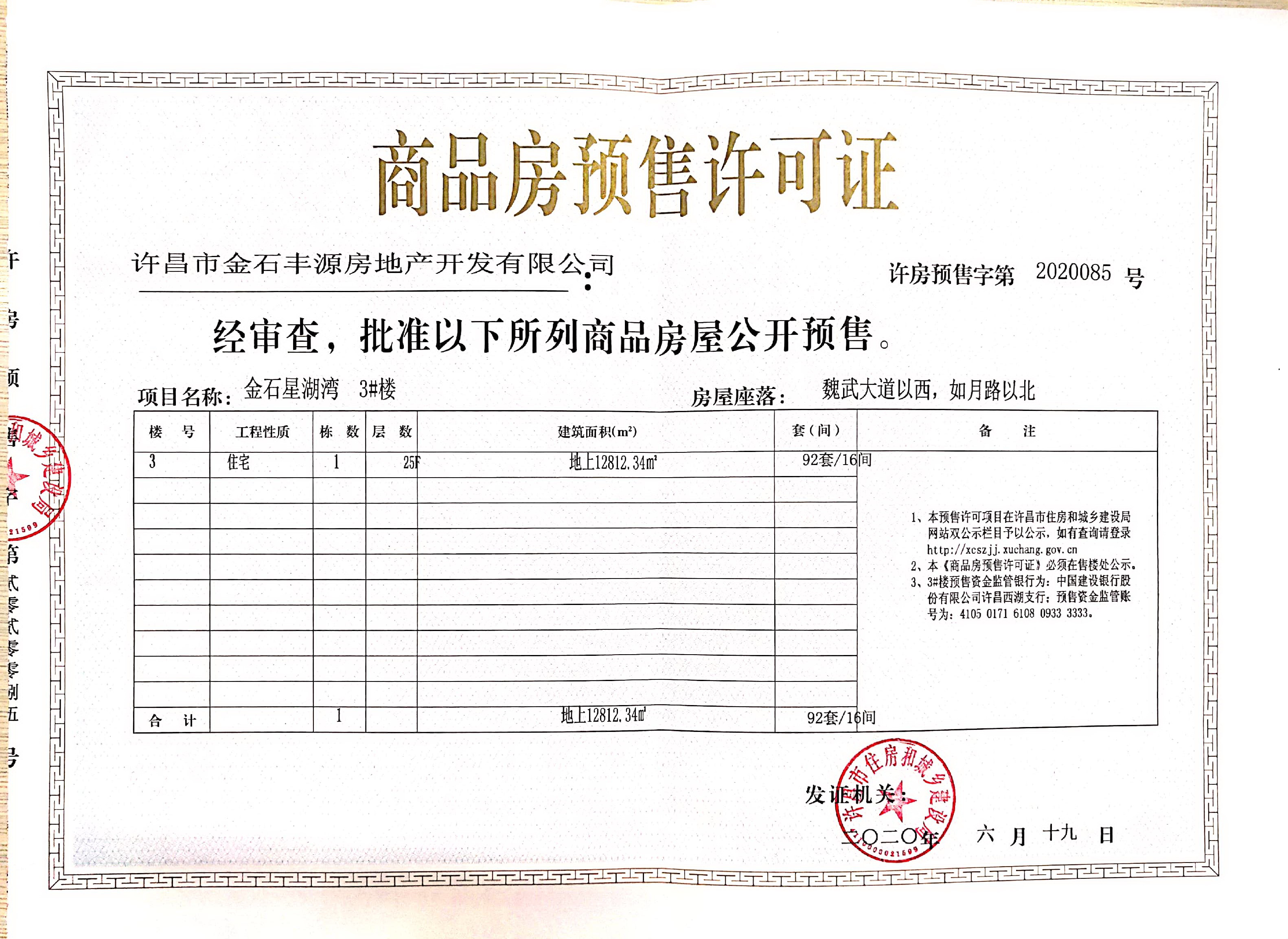 许房预售字第2020085号(许昌市金石丰源房地产开发有限公司)