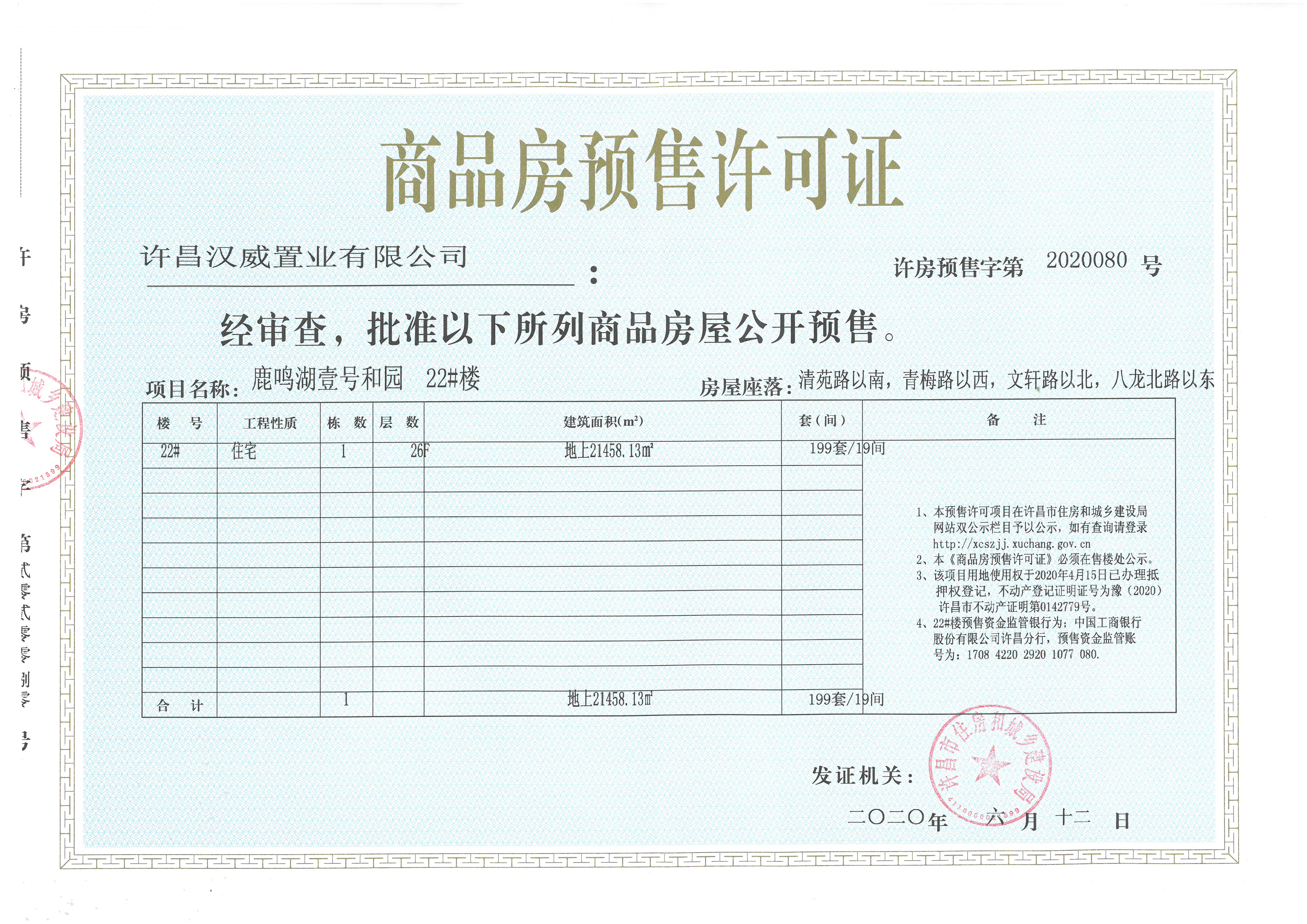 许房预售字第2020080号(许昌汉威置业有限公司)