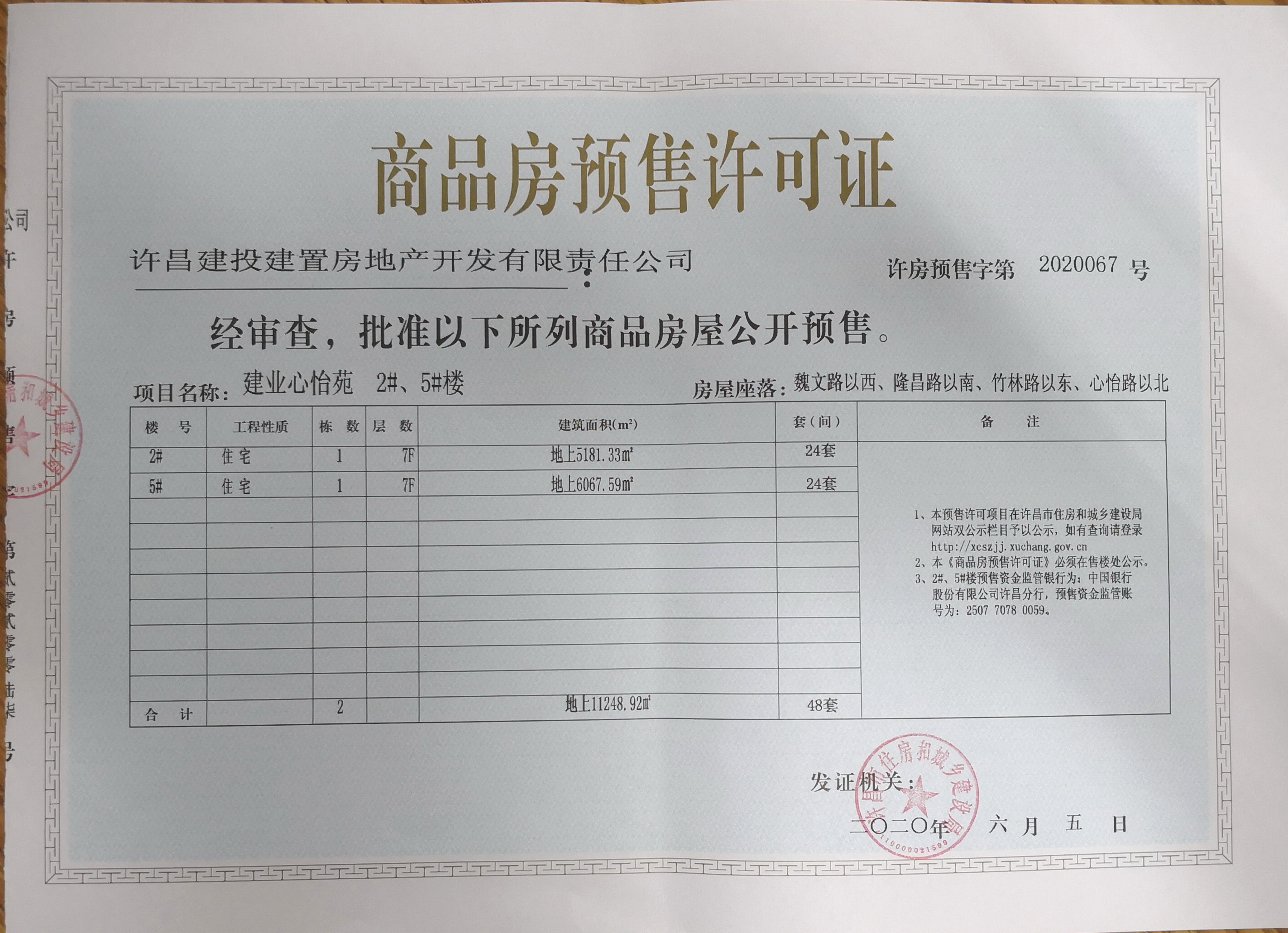 许房预售字第2020067号(许昌市建投建置房地产开发有限责任公司)