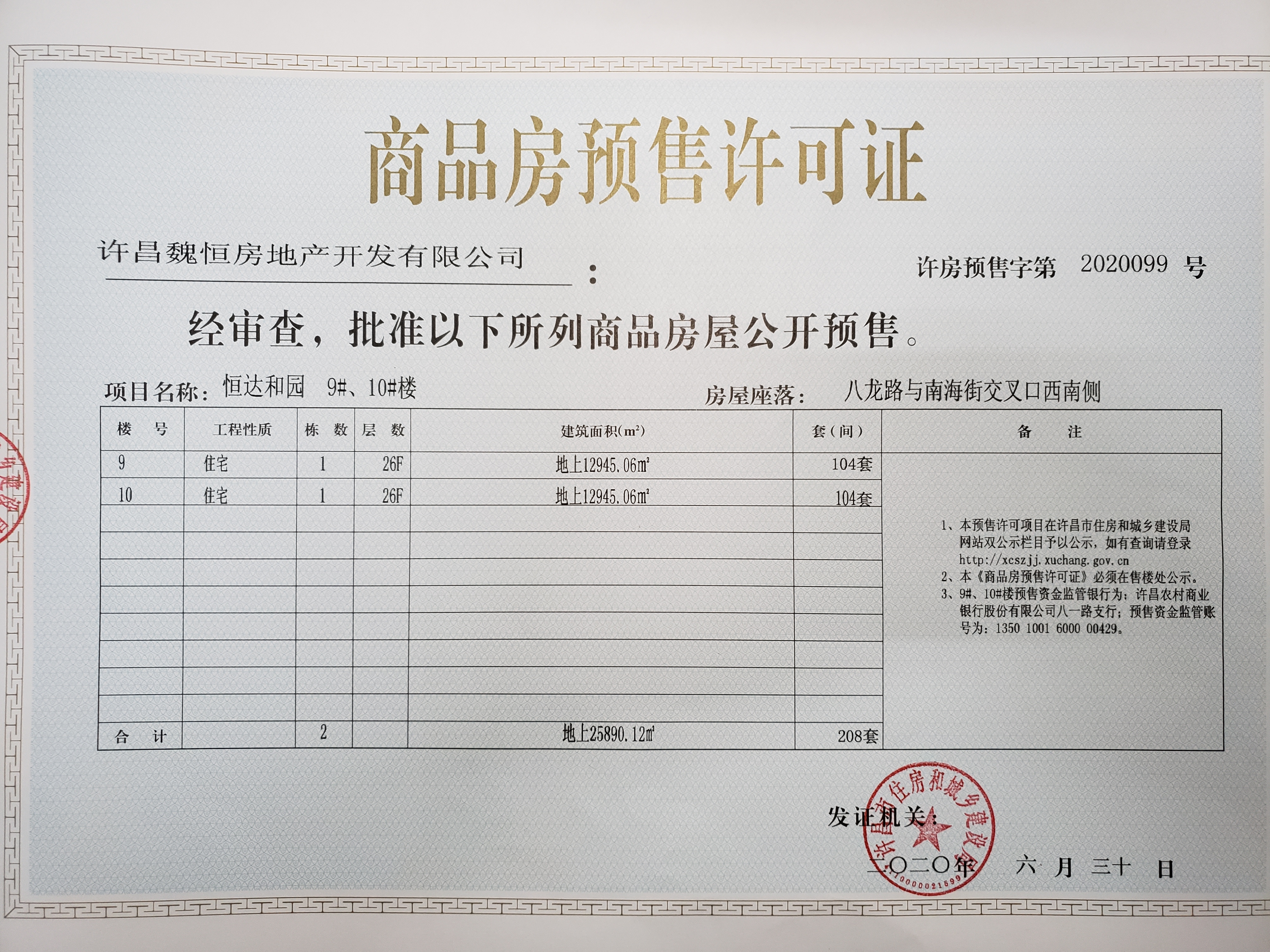 许房预售字第2020099号(许昌魏恒房地产开发有限公司)