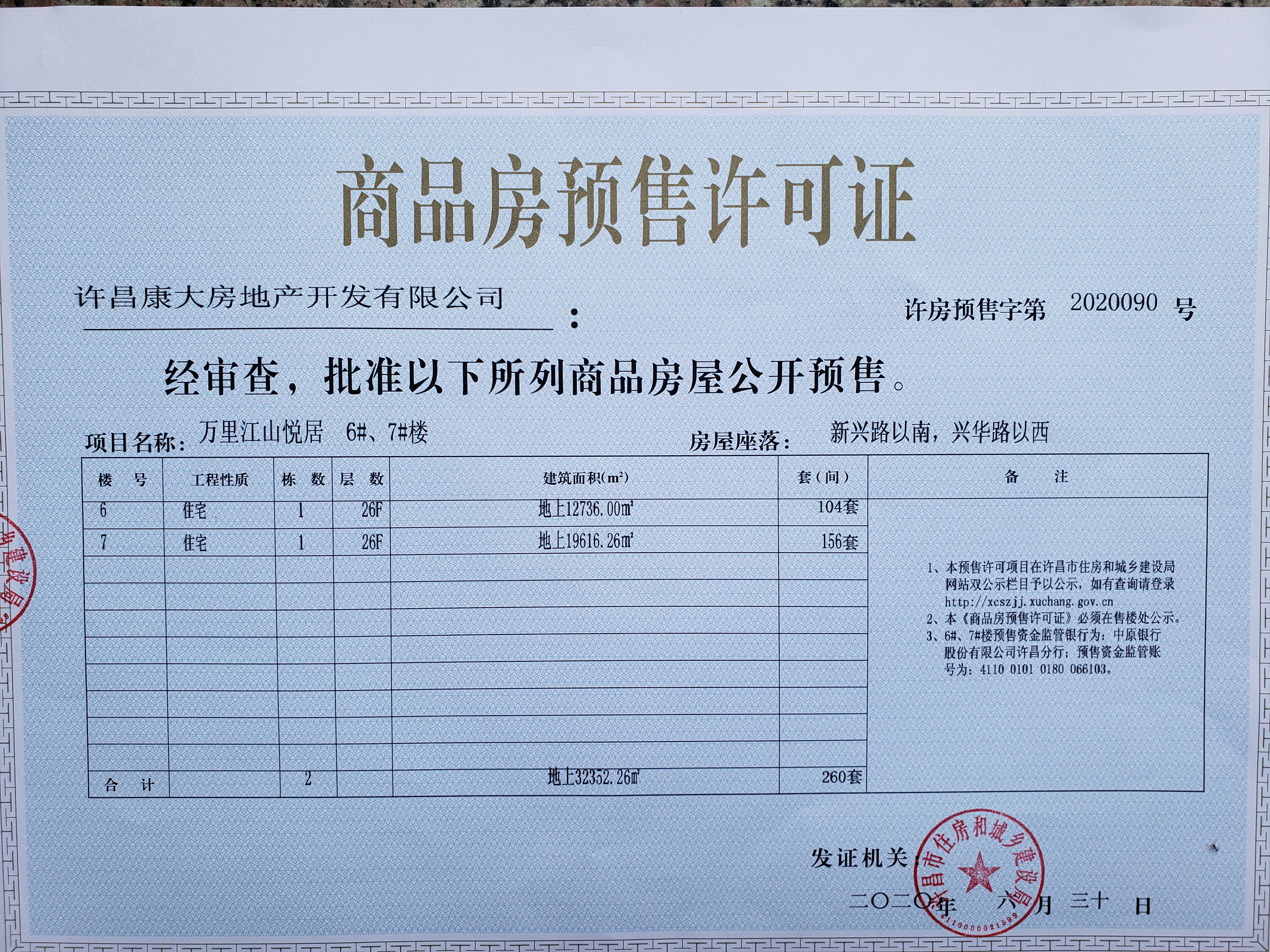 许房预售字第202090号(许昌康大房地产开发有限公司)