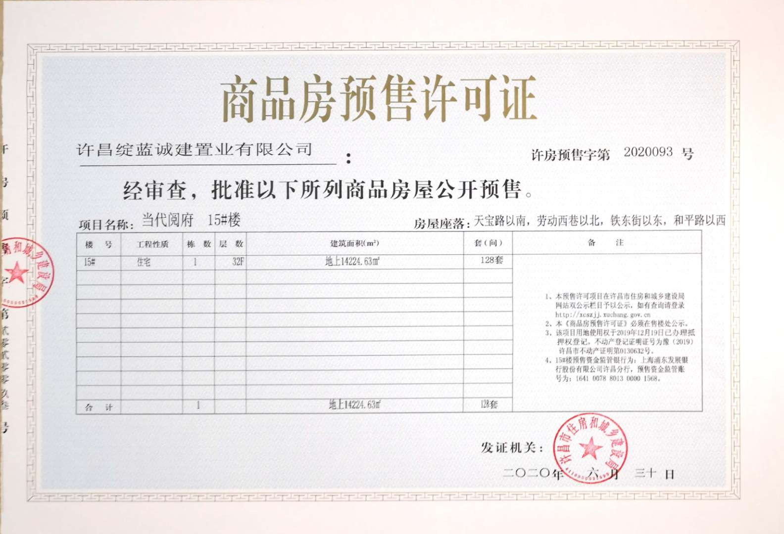 许房预售字第2020093号(许昌绽蓝诚建置业有限公司)