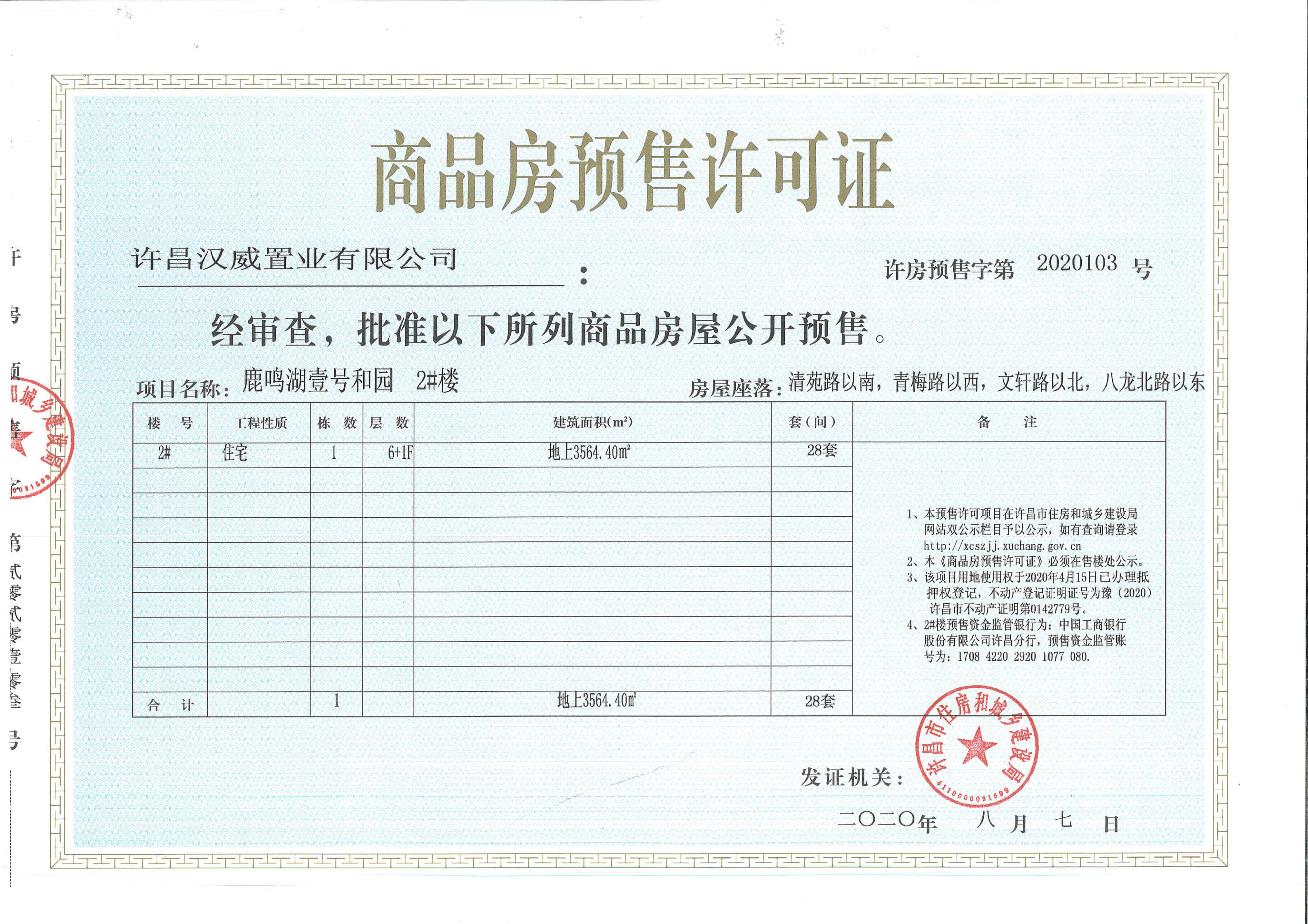 许房预售字第2020103号(许昌汉威置业有限公司)