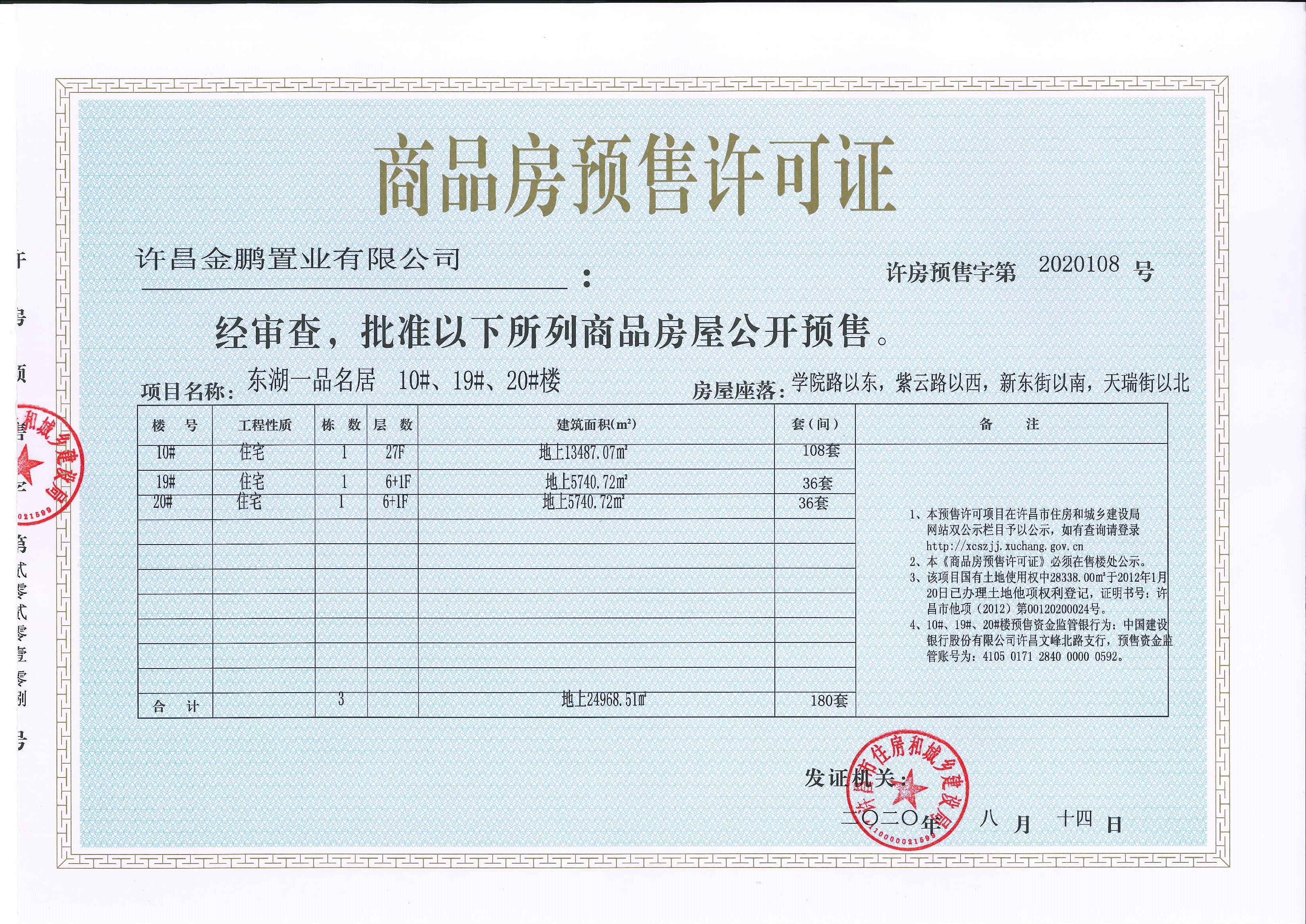 许房预售字第2020108号(许昌金鹏置业有限公司)