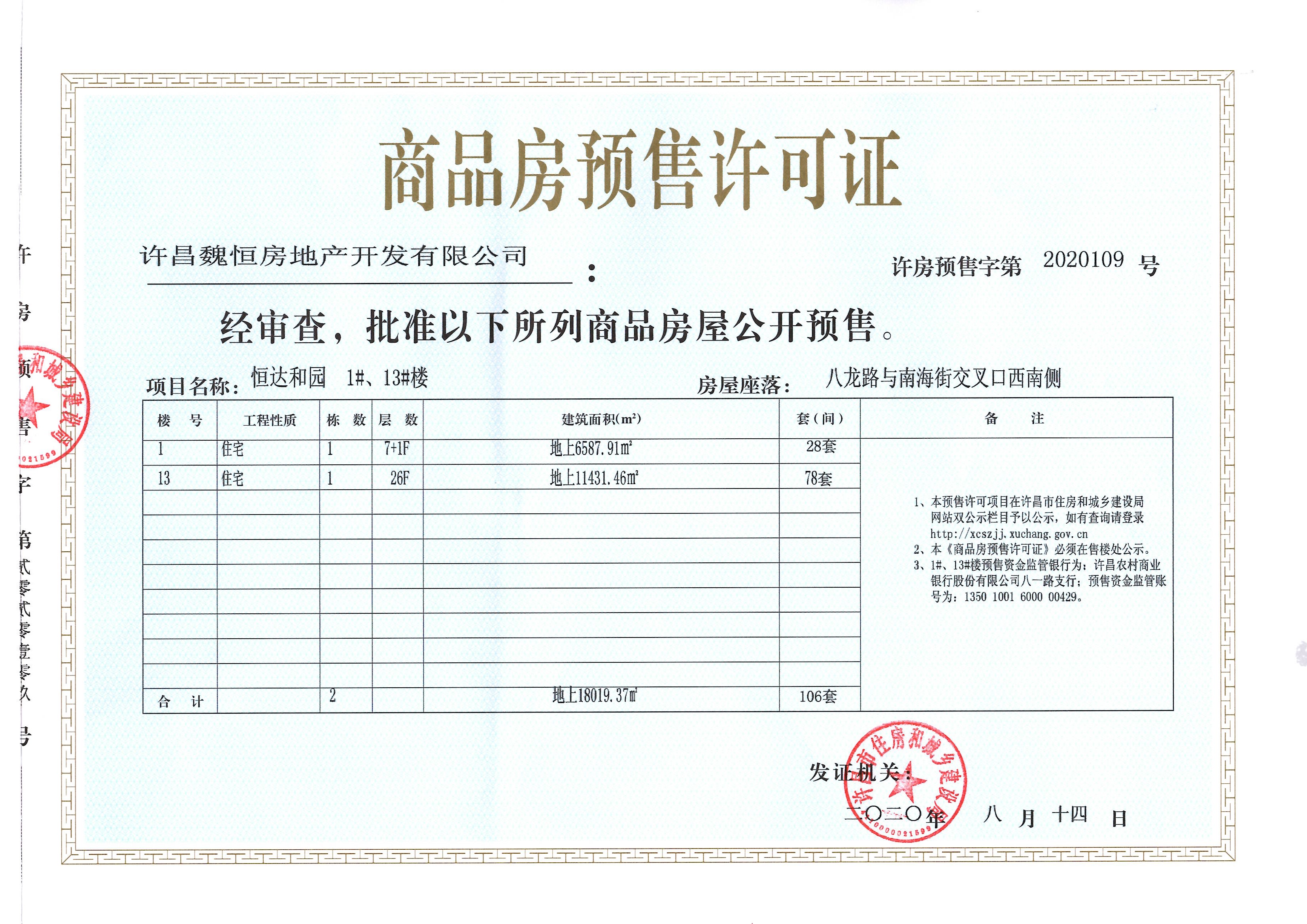 许房预售字第2020109号(许昌魏恒房地产开发有限公司)