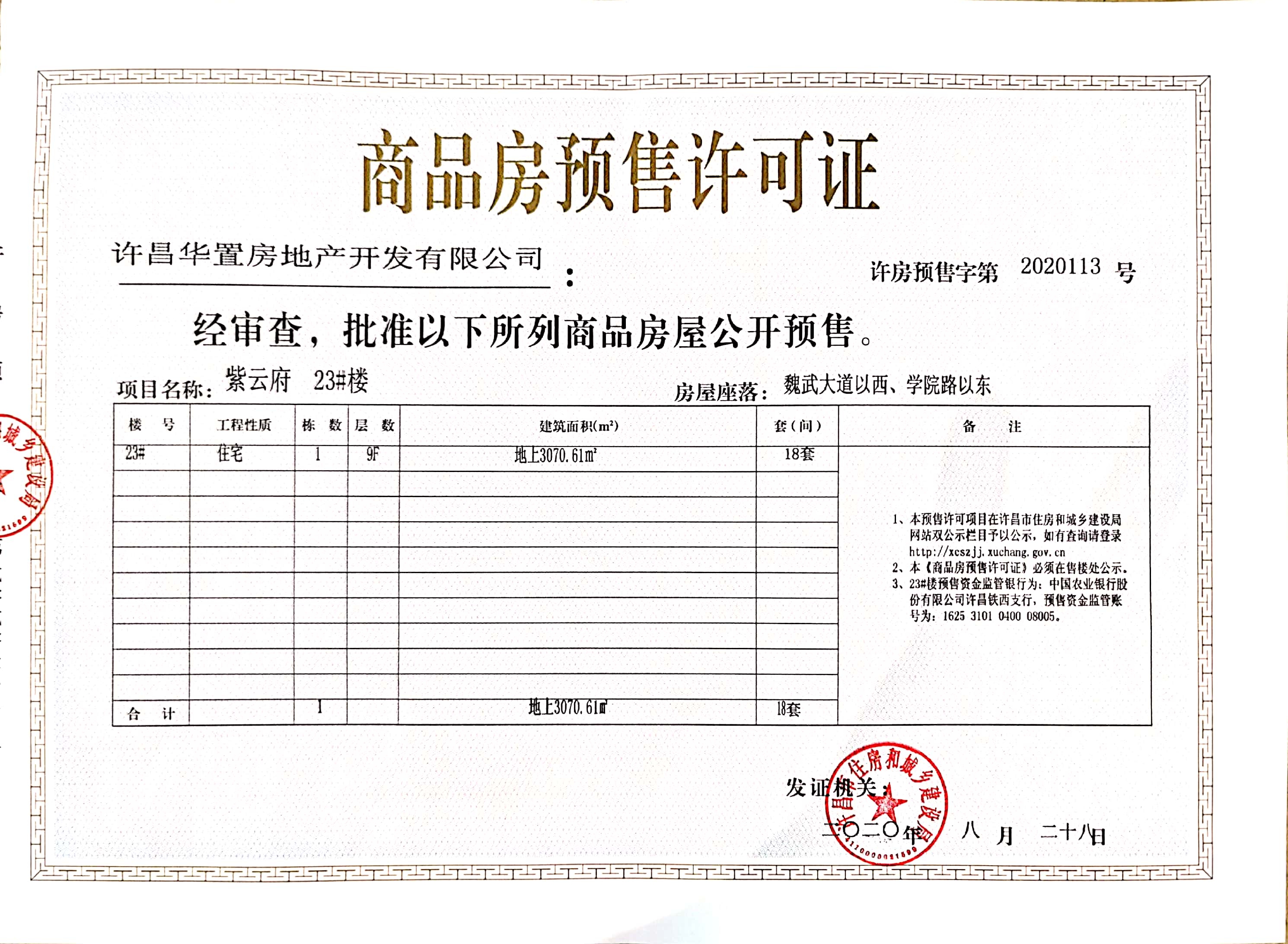 许房预售字第2020113号(许昌华置房地产开发有限公司)