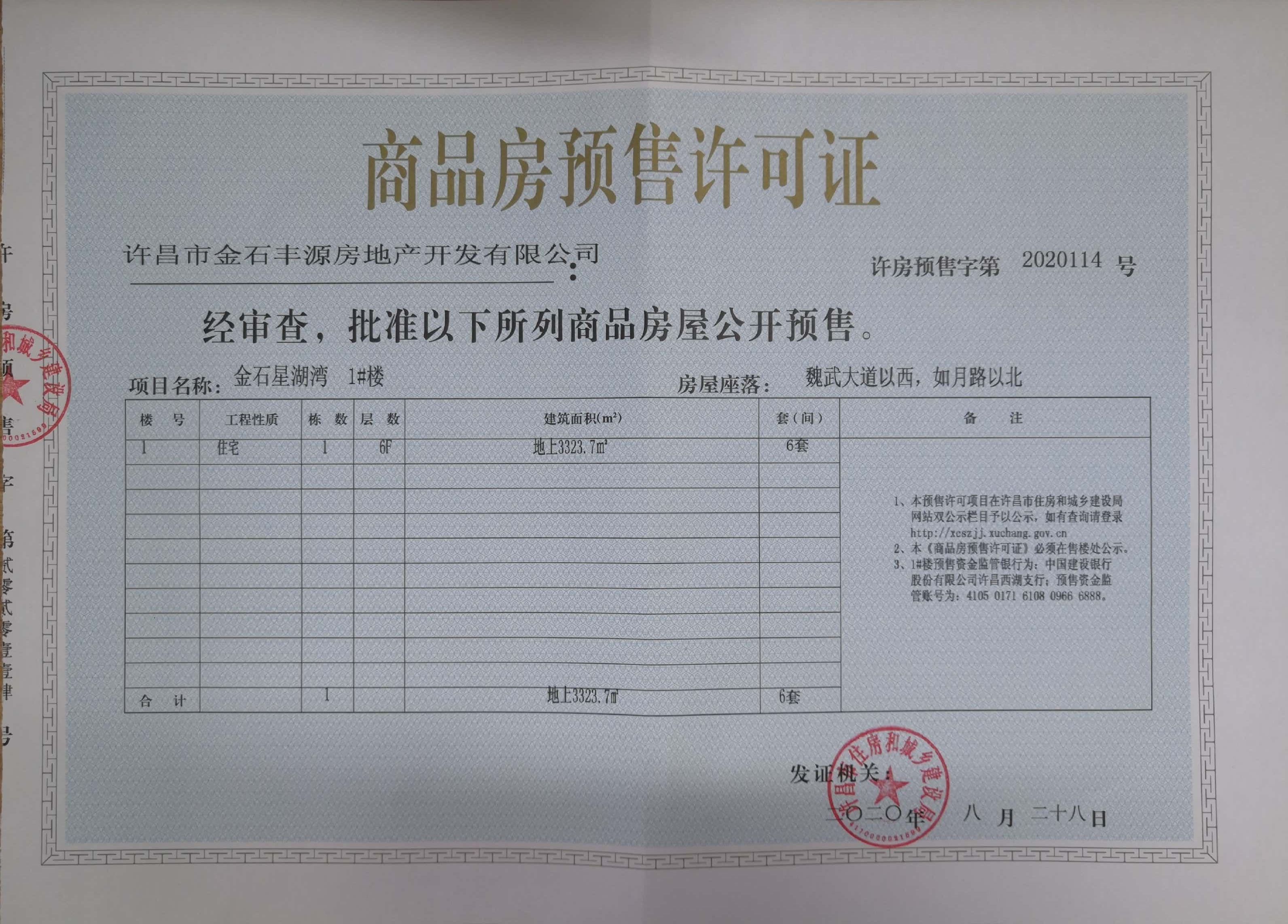 许房预售字第2020114号(许昌市金石丰源房地产开发有限公司)