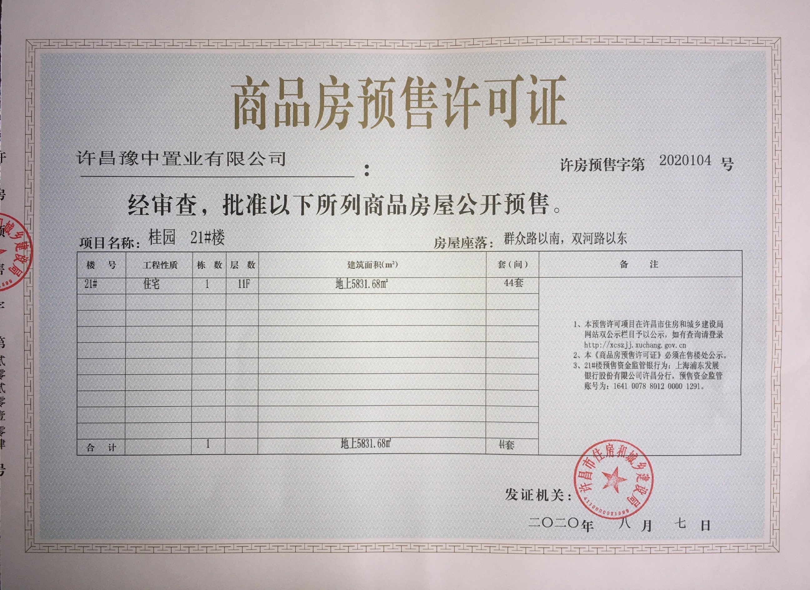 许房预售字第2020104号(许昌豫中置业有限公司)