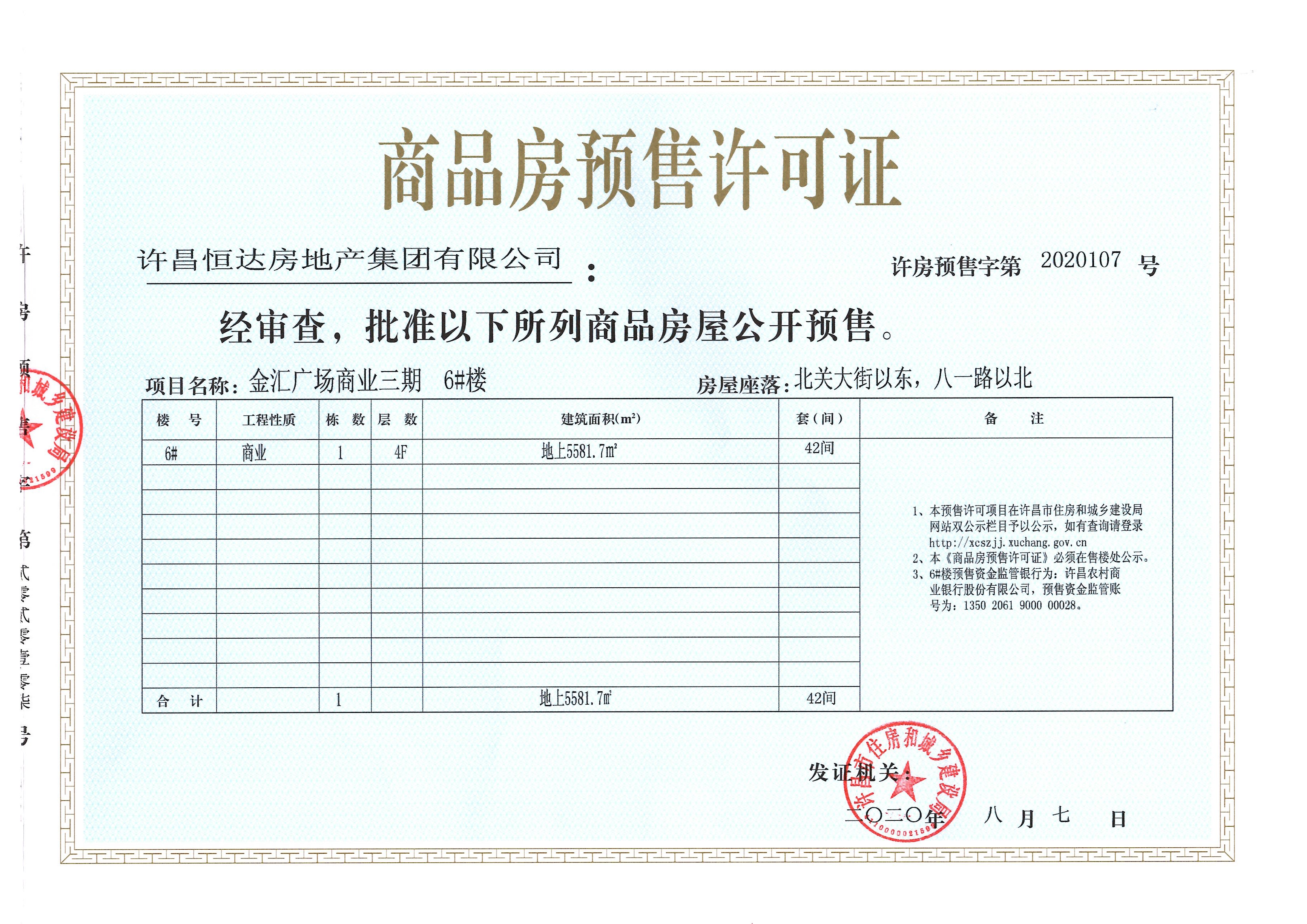 许房预售字第2020107号(许昌恒达房地产集团有限公司)