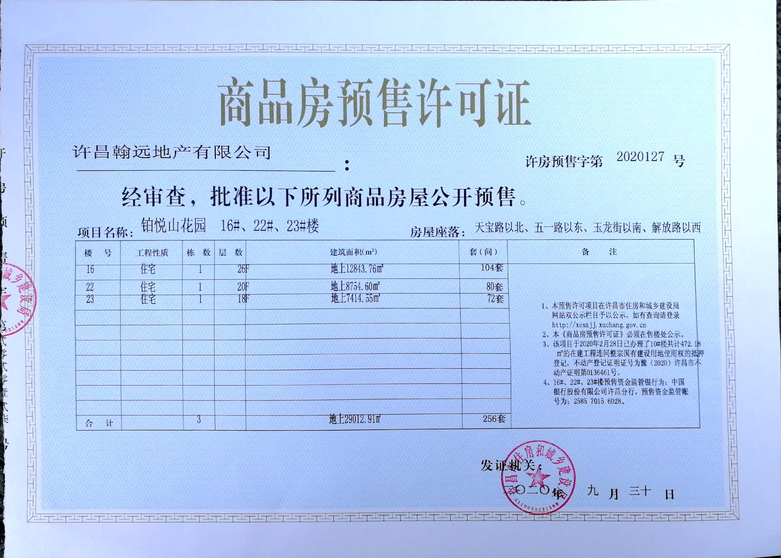 许房预售字第2020127号(许昌翰远地产有限公司)