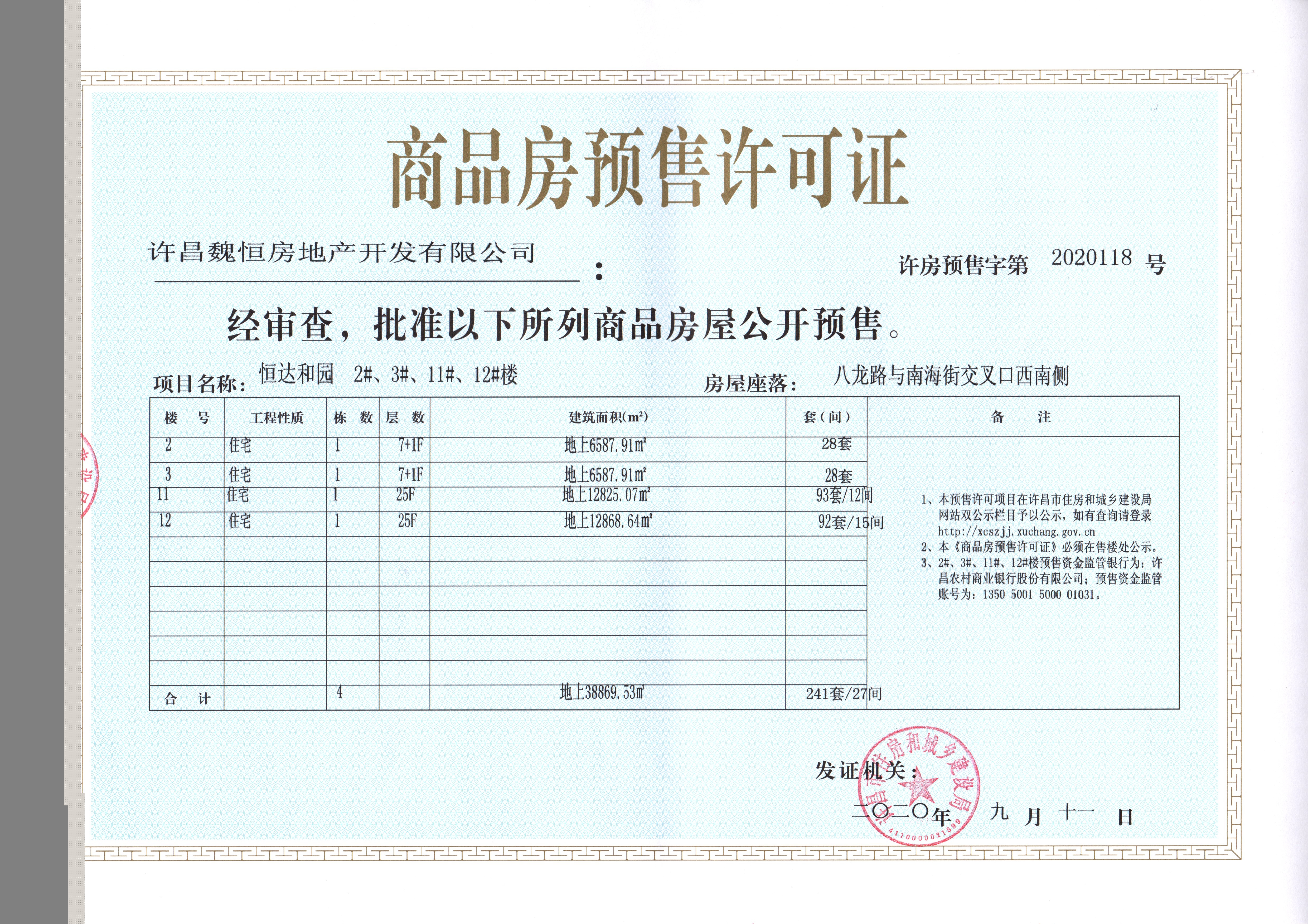 许房预售字第2020118号(许昌魏恒房地产开发有限公司)