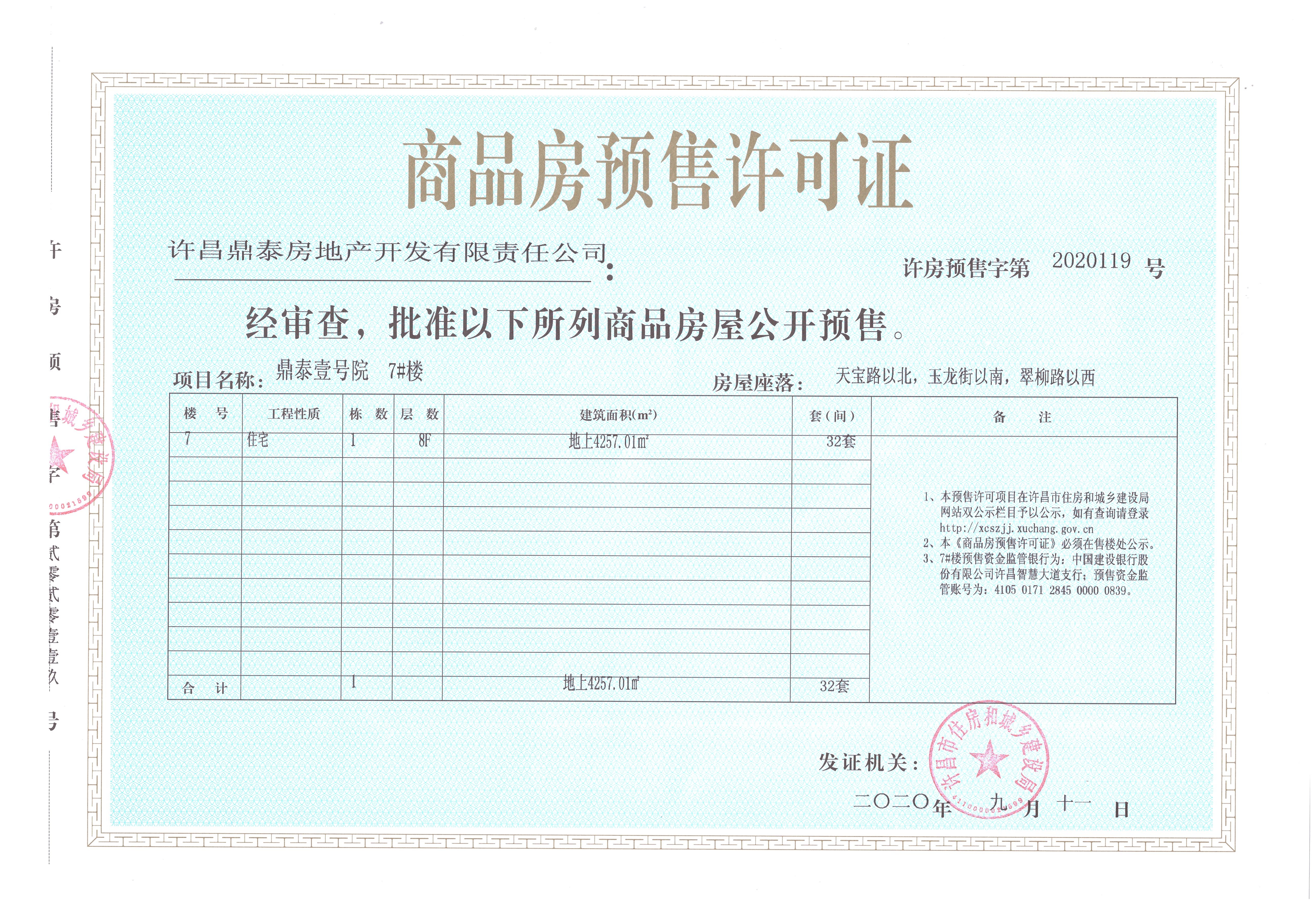 许房预售字第2020119号(许昌鼎泰房地产开发有限责任公司)