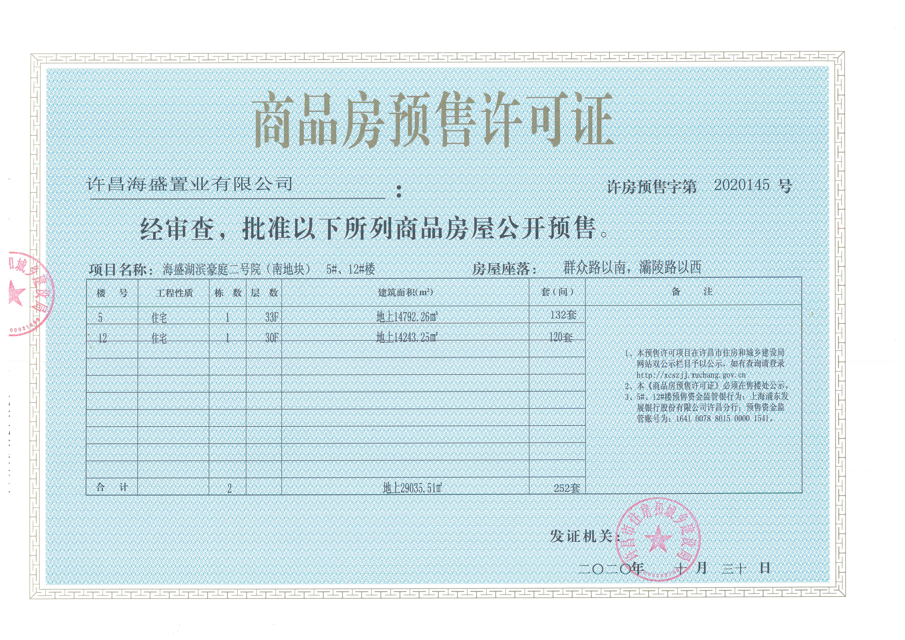 许房预售字第2020145号(许昌海盛置业有限公司)