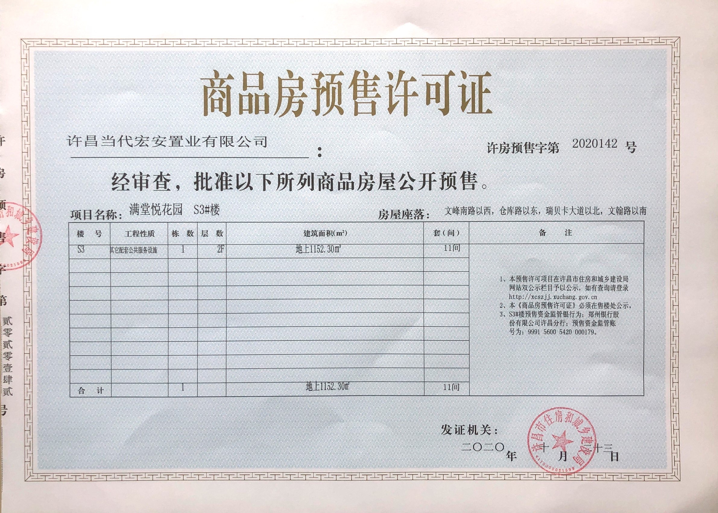 许房预售字第2020142号(许昌当代宏安置业有限公司)