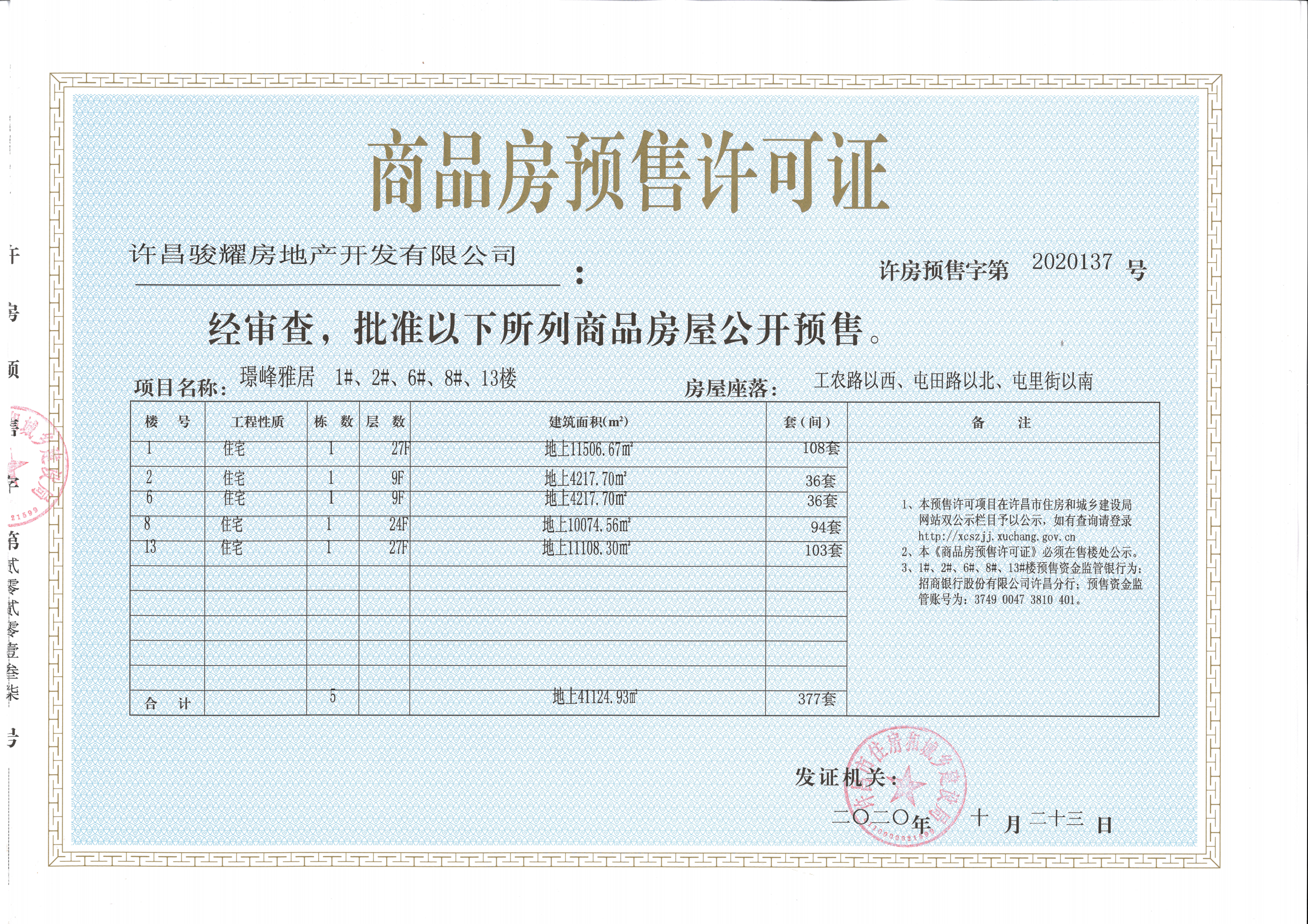 许房预售字第2020137号(许昌骏耀房地产开发有限公司)