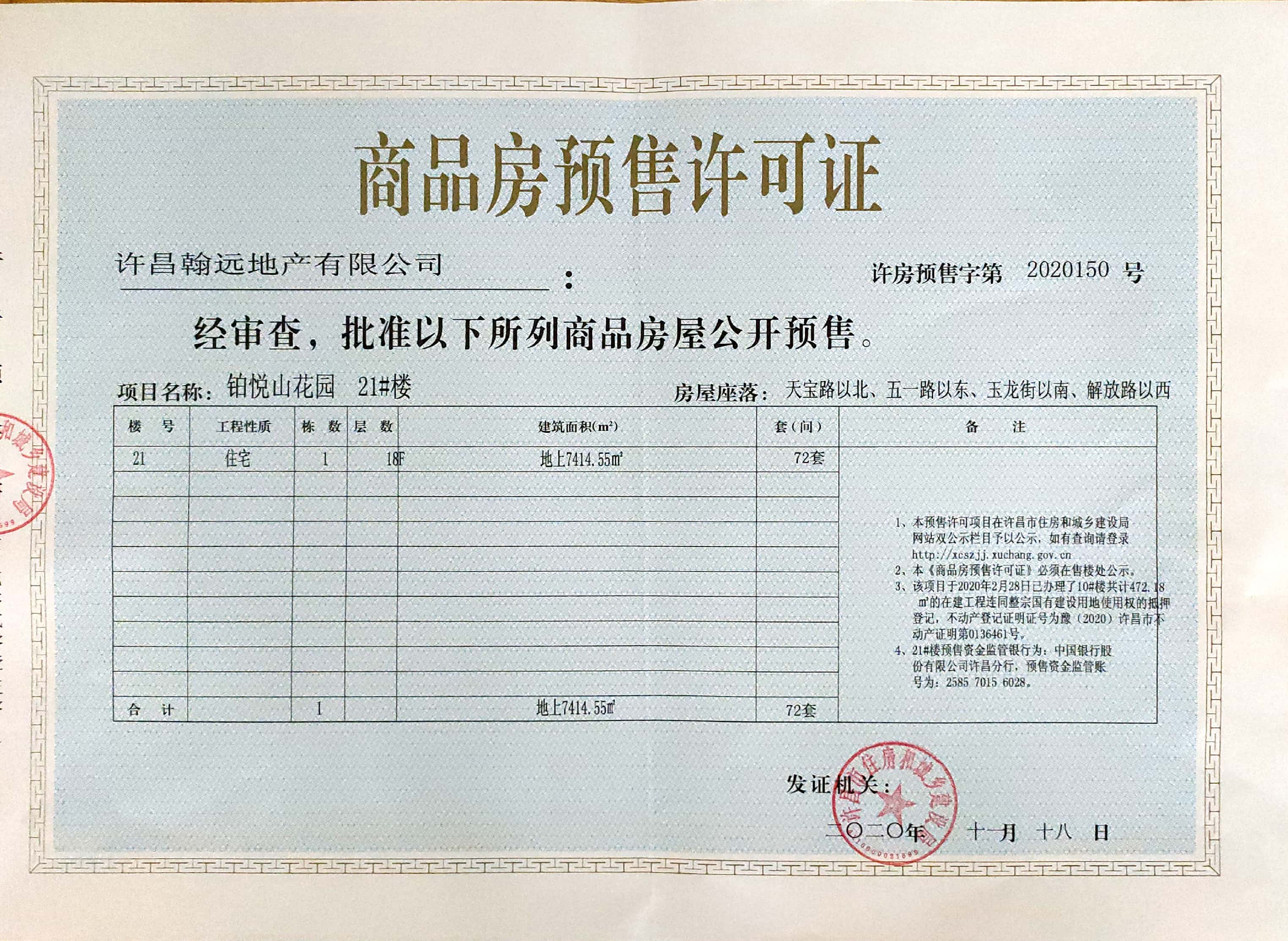 许房预售字第2020150号(许昌翰远地产有限公司)