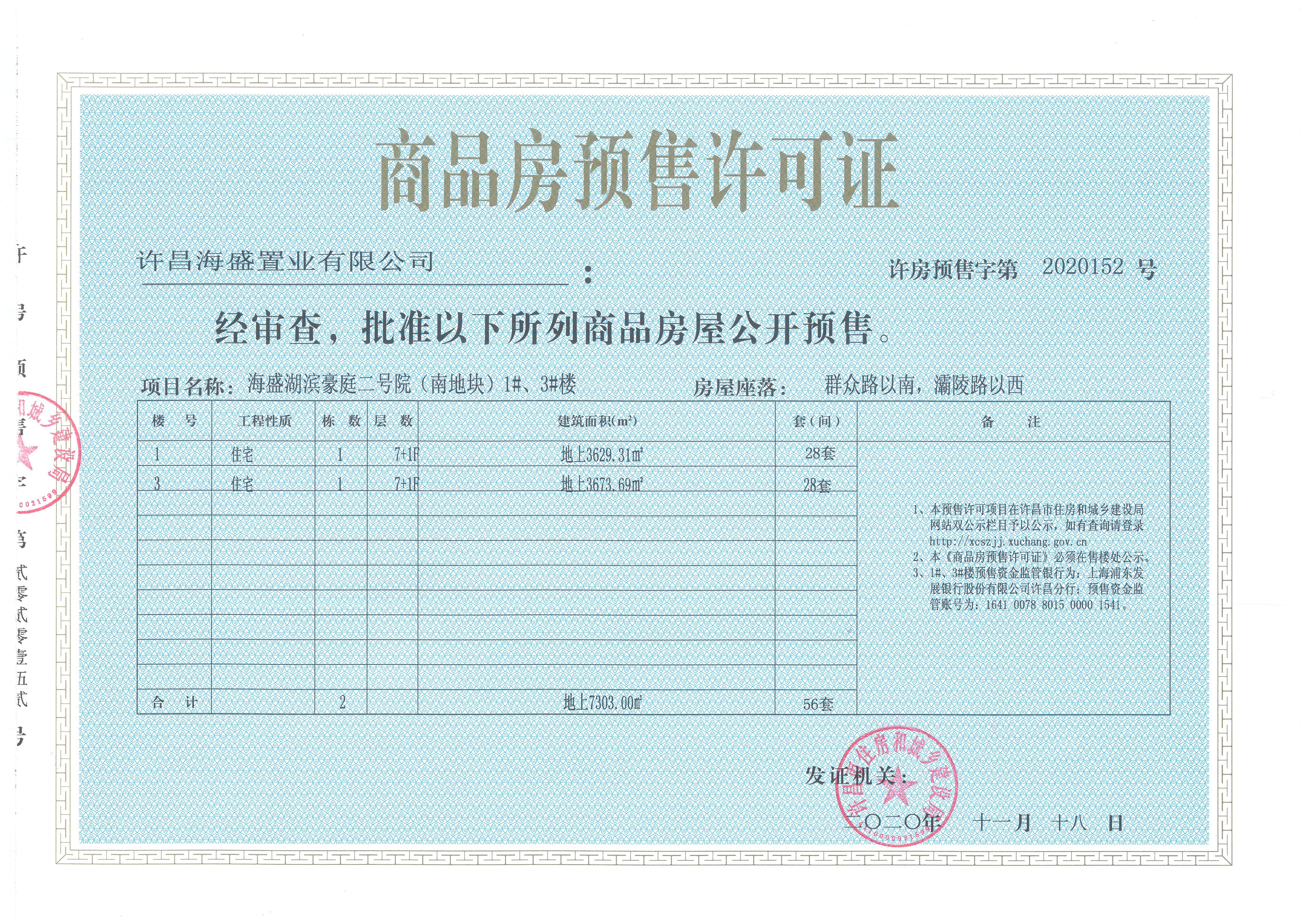 许房预售字第2020152号(许昌海盛置业有限公司)