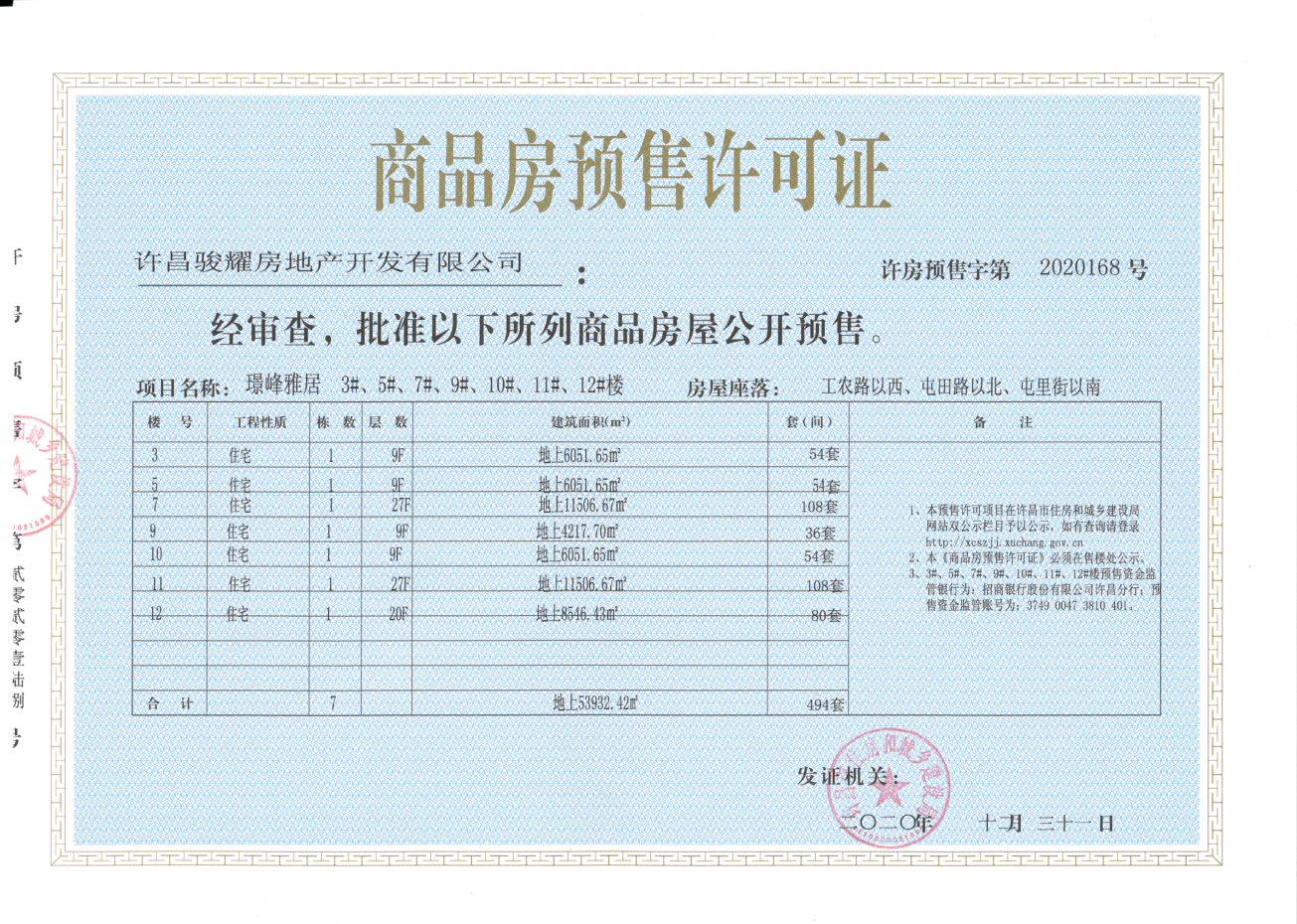 许房预售字第2020168号(许昌骏耀房地产开发有限公司)