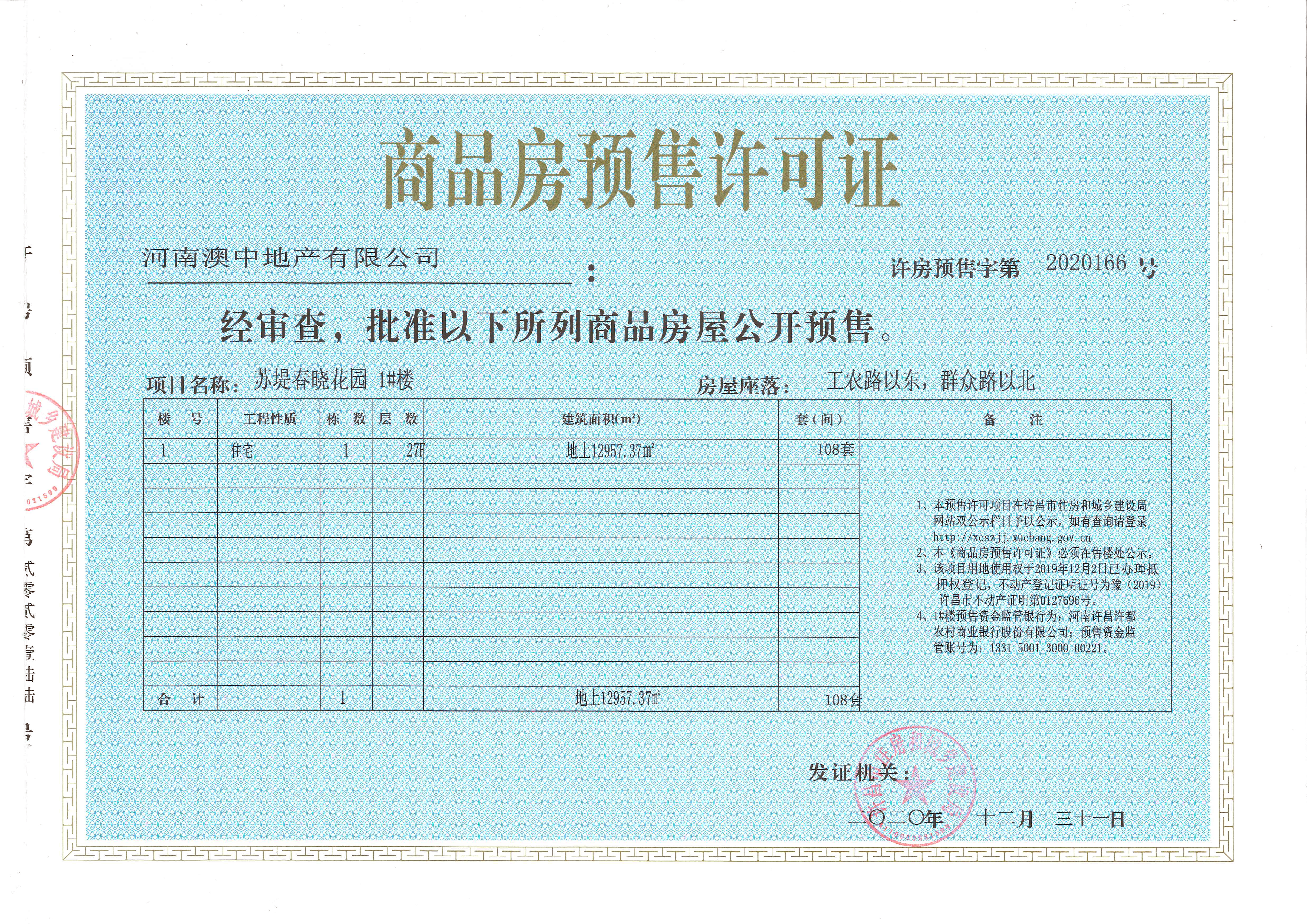 许房预售字第2020166号(河南澳中地产有限公司)