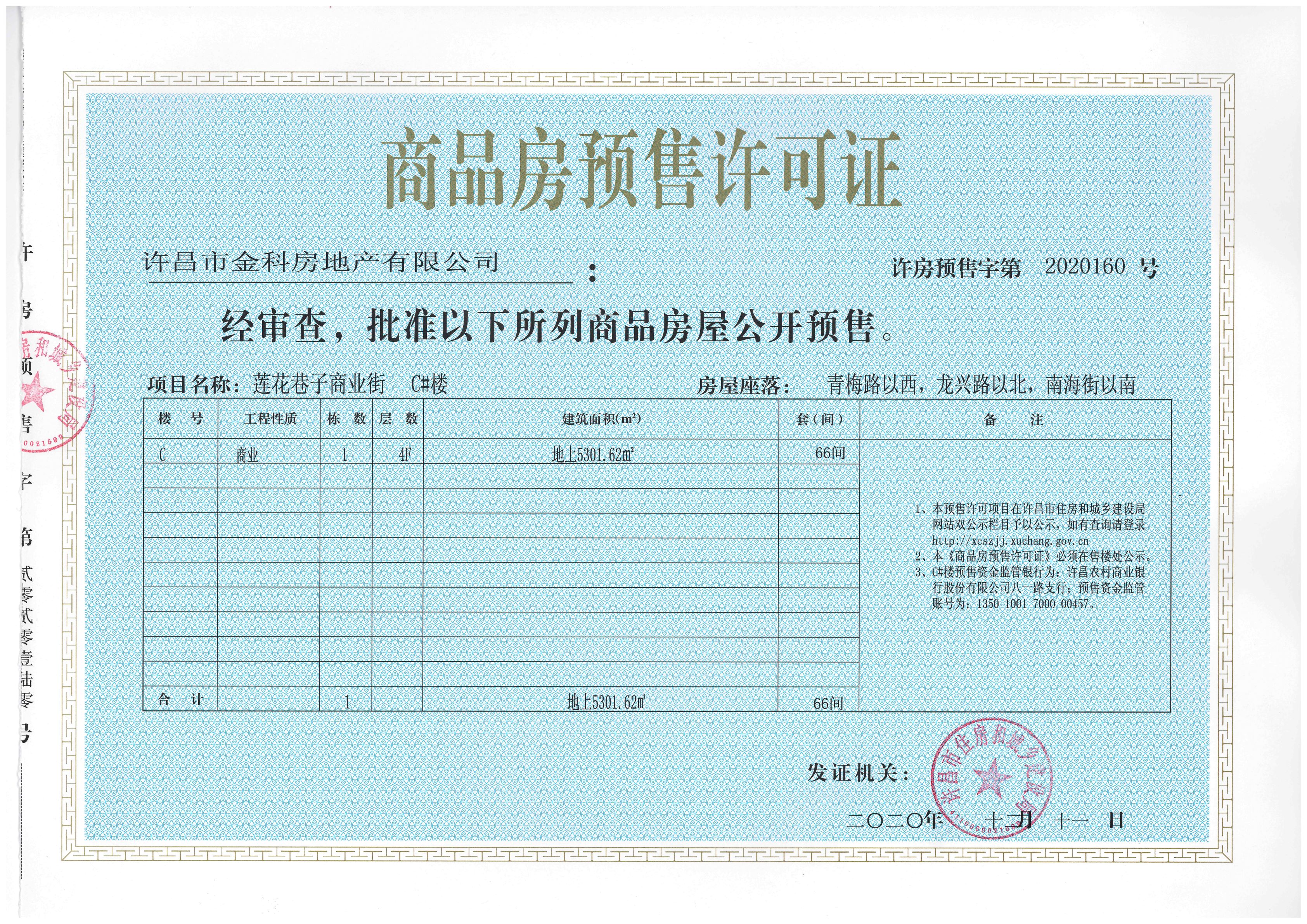 许房预售字第2020160号(许昌市金科房地产有限公司)