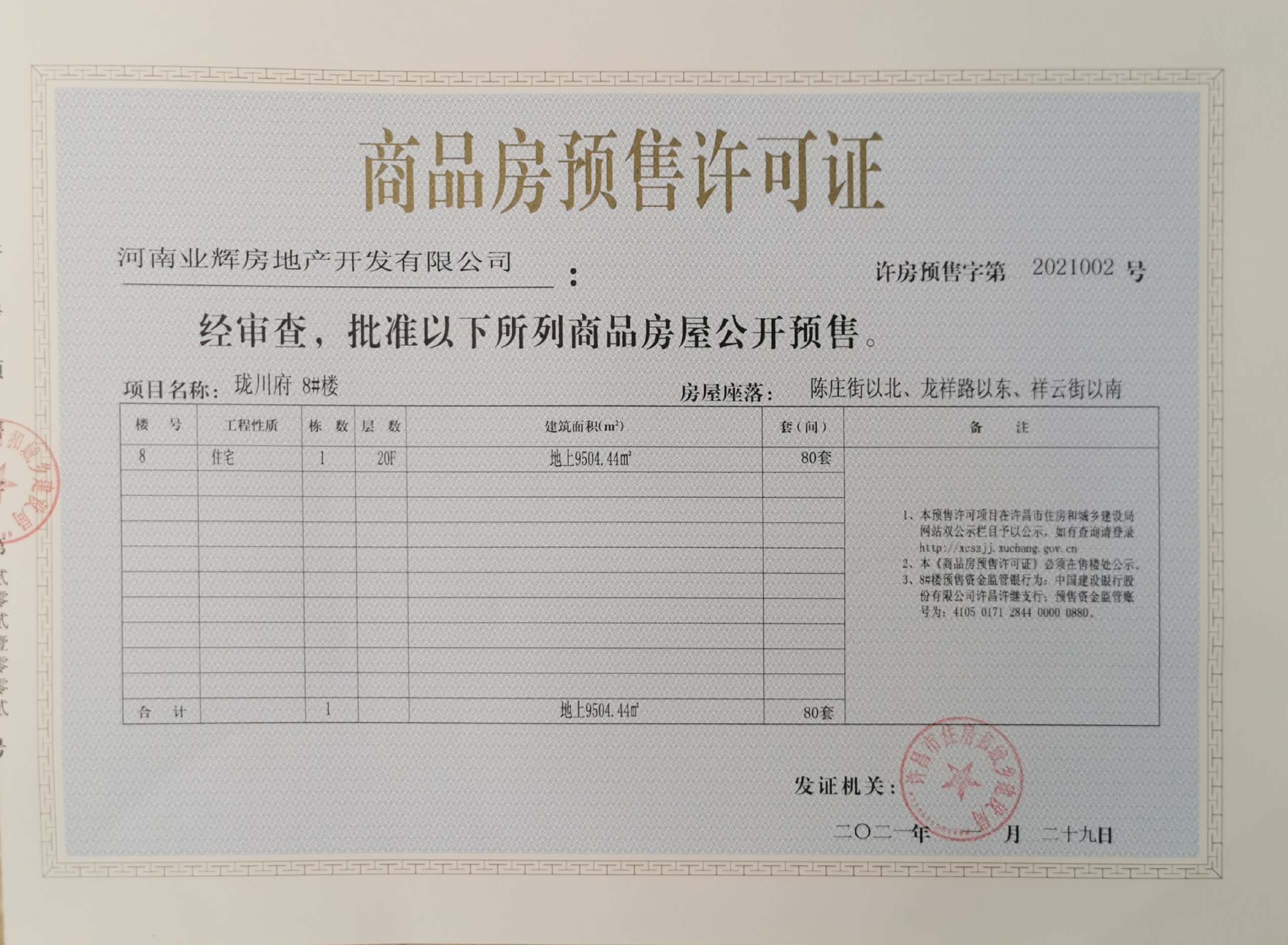 许房预售字第2021002号(河南业辉房地产开发有限公司)