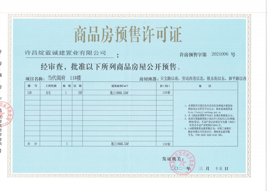 许房预售字第2021006号(许昌绽蓝诚建置业有限公司)