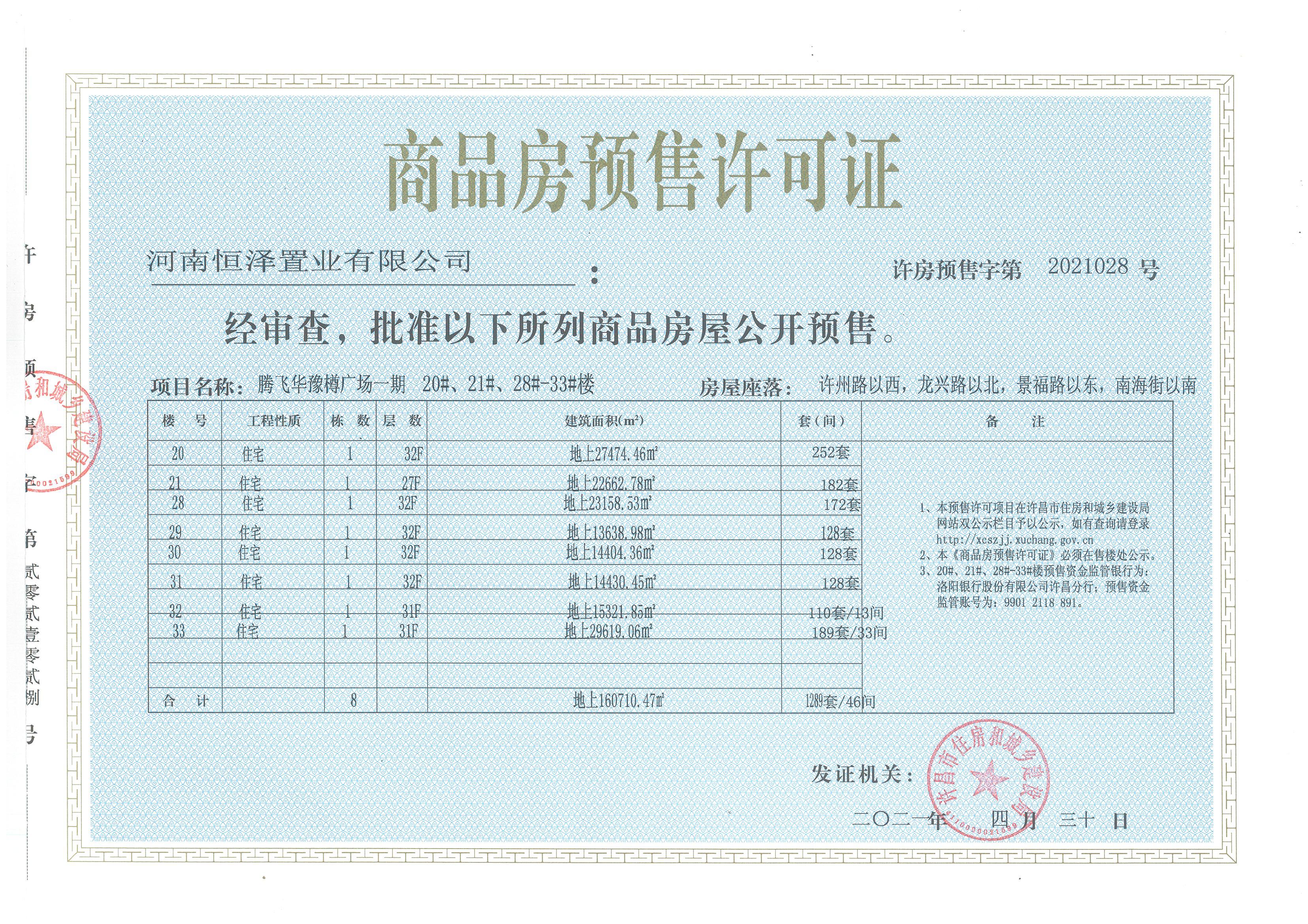许房预售字第2021028号(河南恒泽置业有限公司)