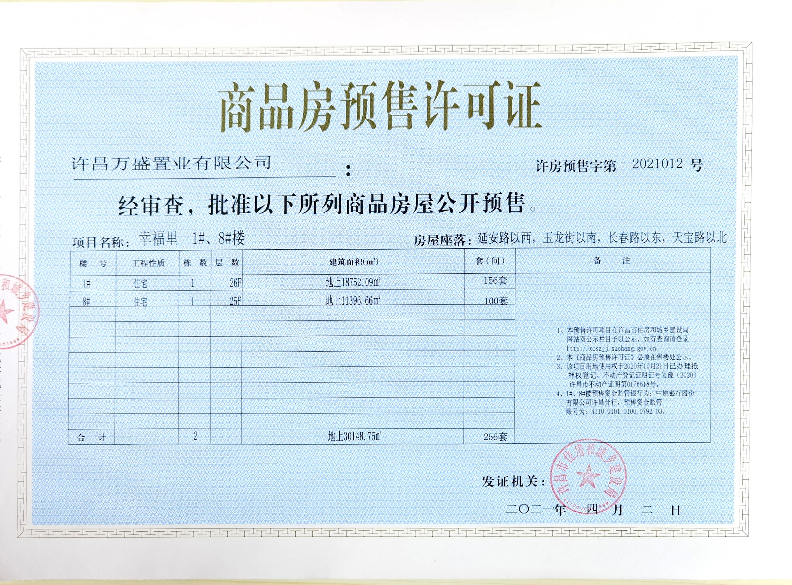 许房预售字第2021012号(许昌万盛置业有限公司)