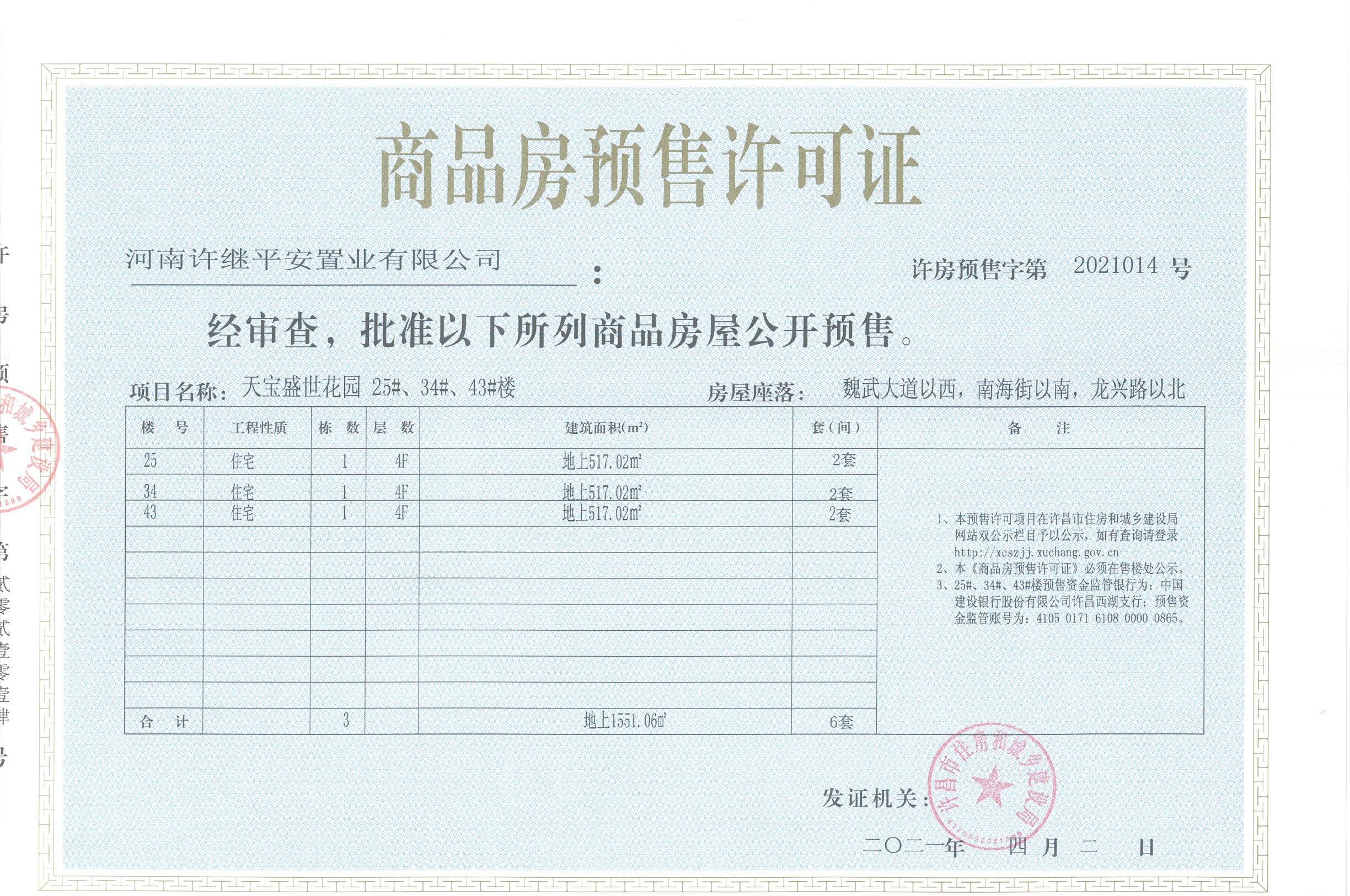 许房预售字第2021014号(河南许继平安置业有限公司)