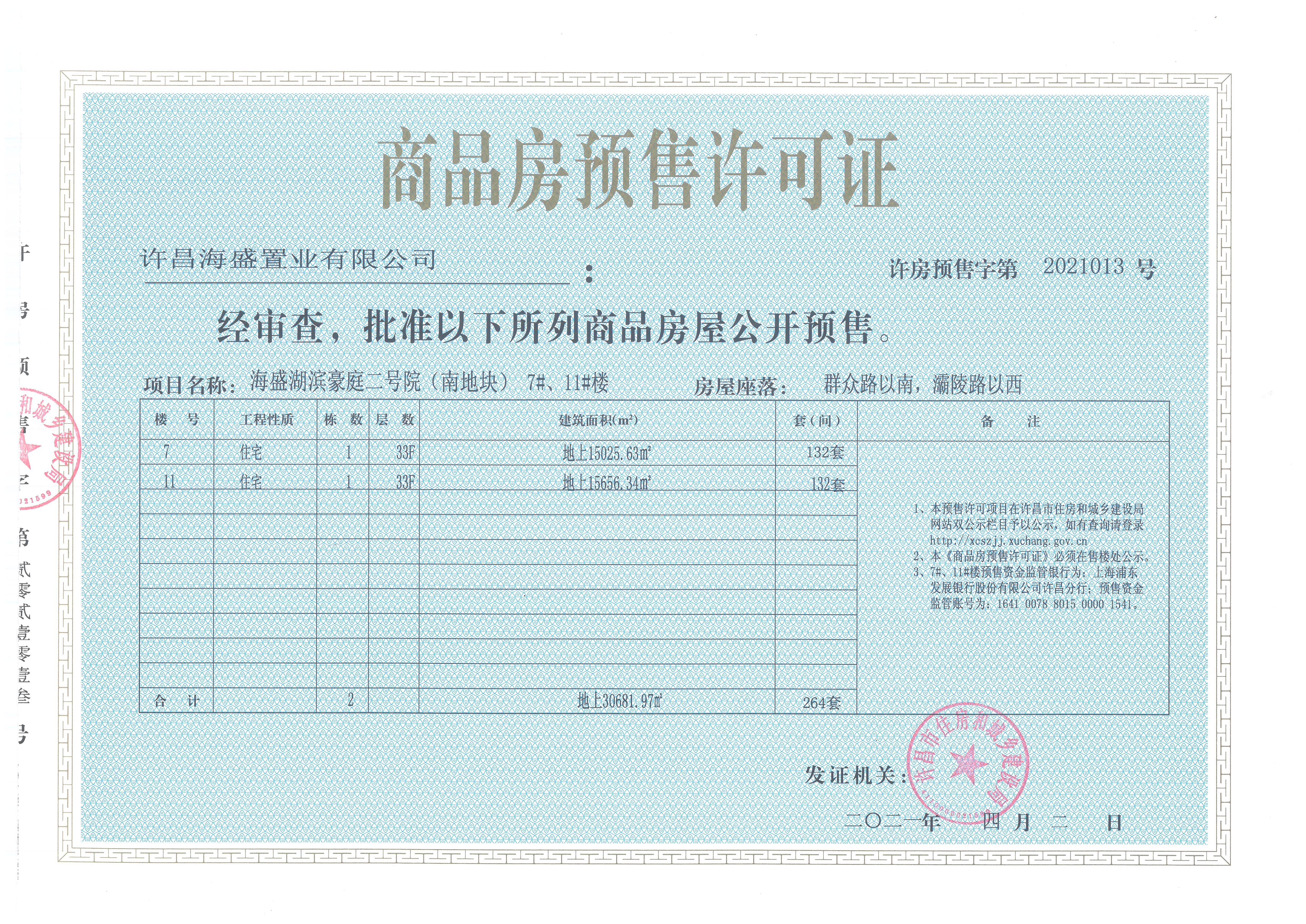 许房预售字第2021013号(许昌海盛置业有限公司)