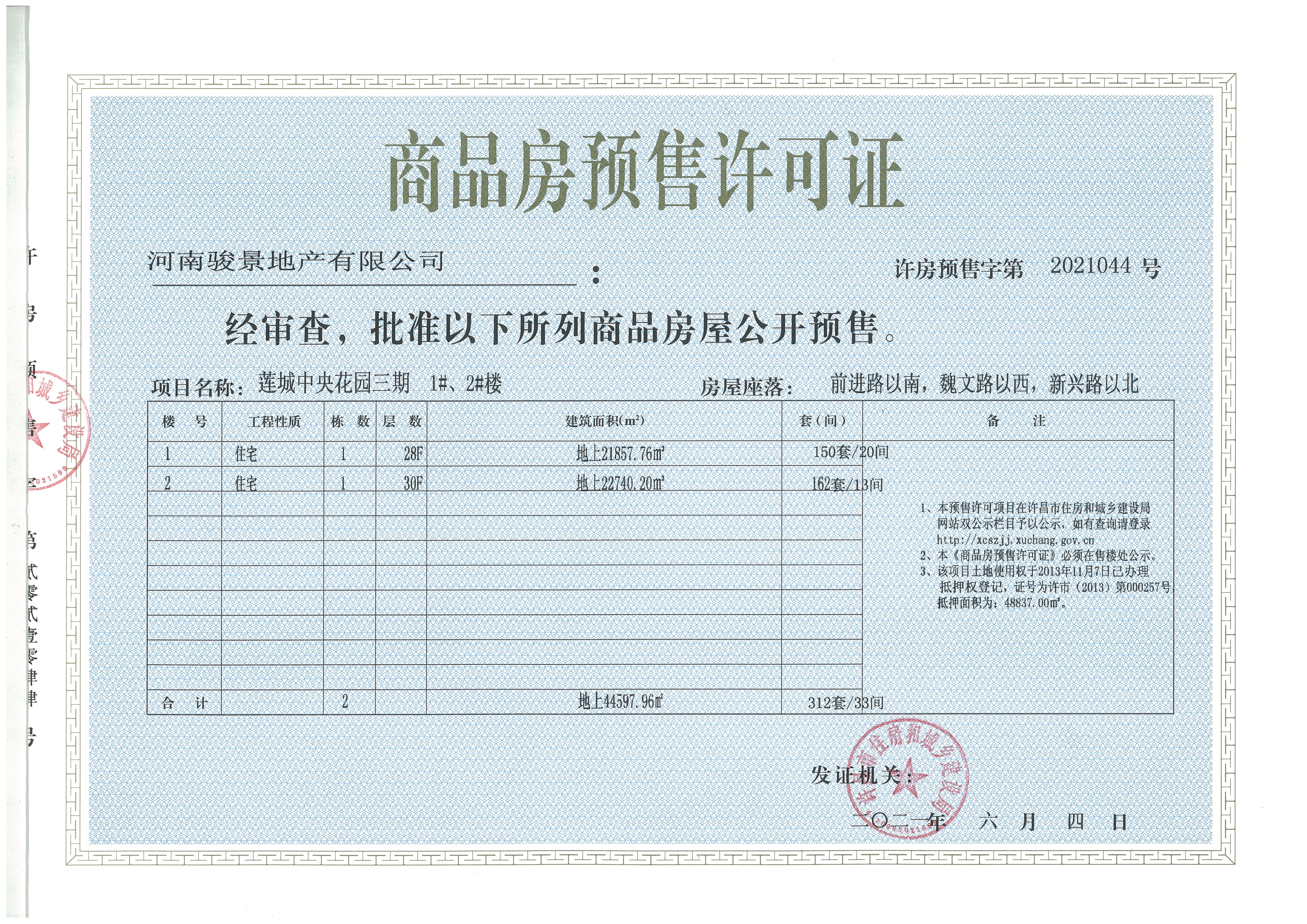 许房预售字第2021044号(河南骏景地产有限公司)