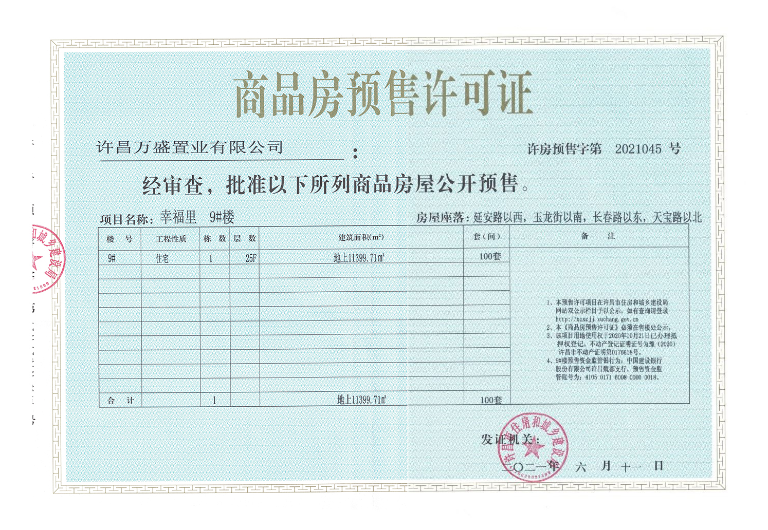 许房预售字第2021045号(许昌万盛置业有限公司)