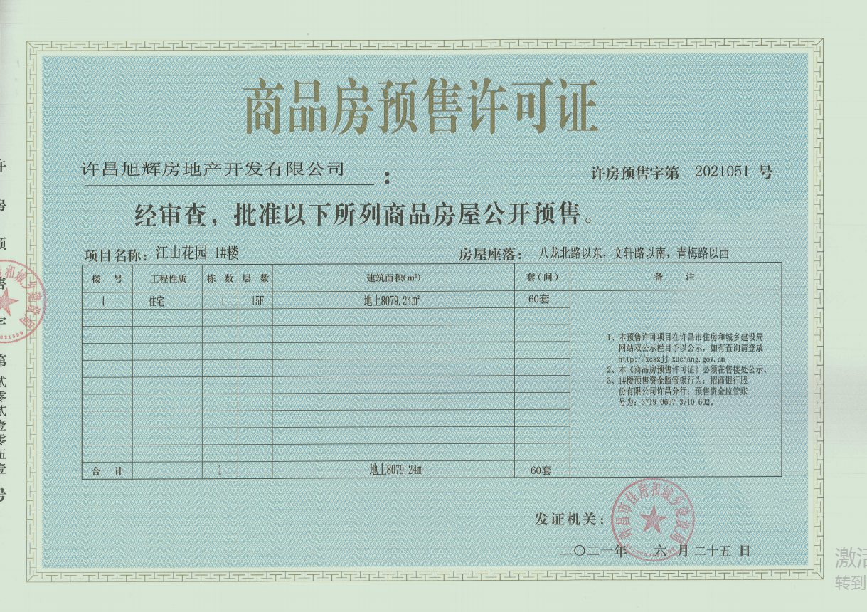 许房预售字第2021051号(许昌旭辉房地产开发有限公司)