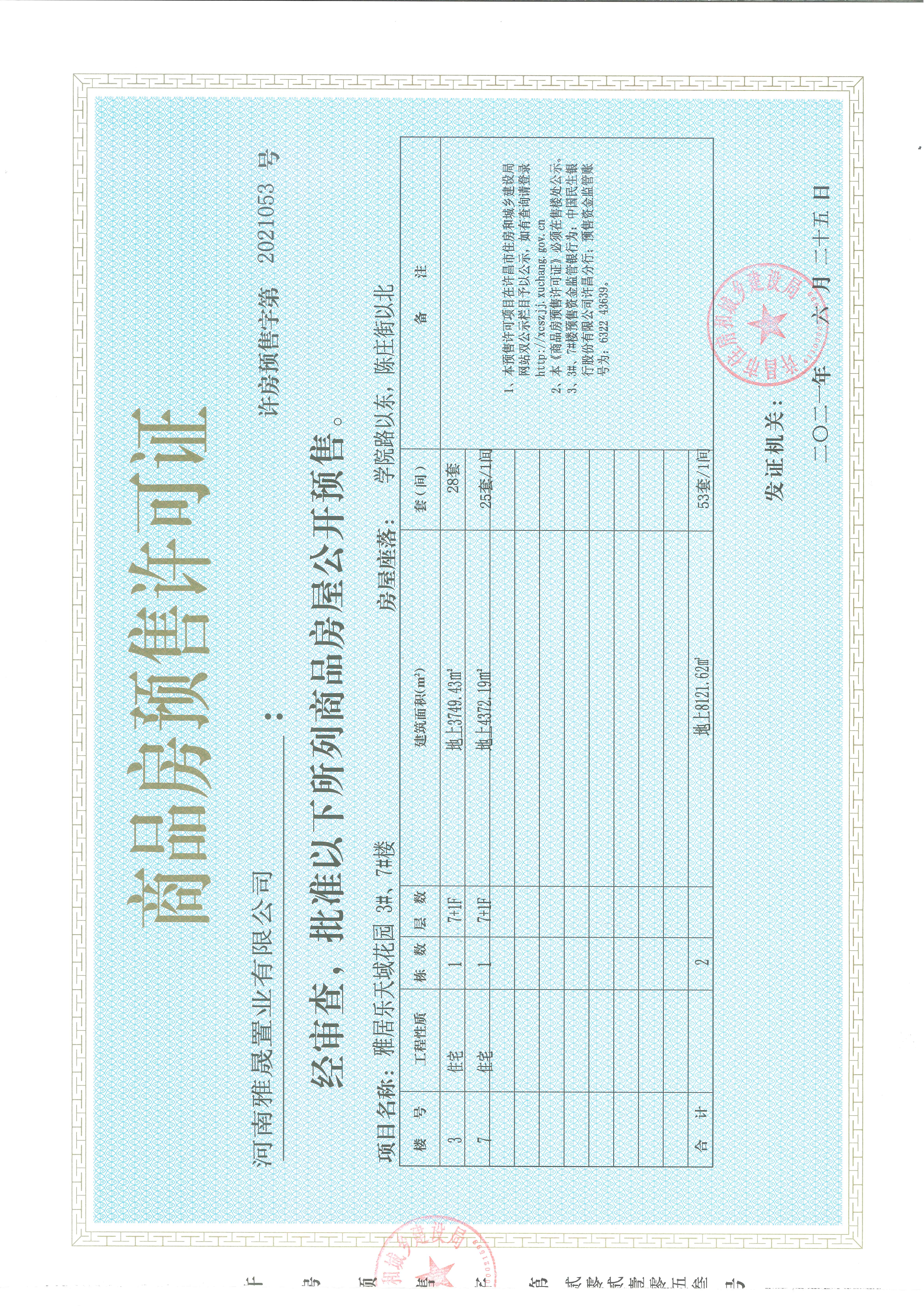 许房预售字第2021053号(河南雅晟置业有限公司)