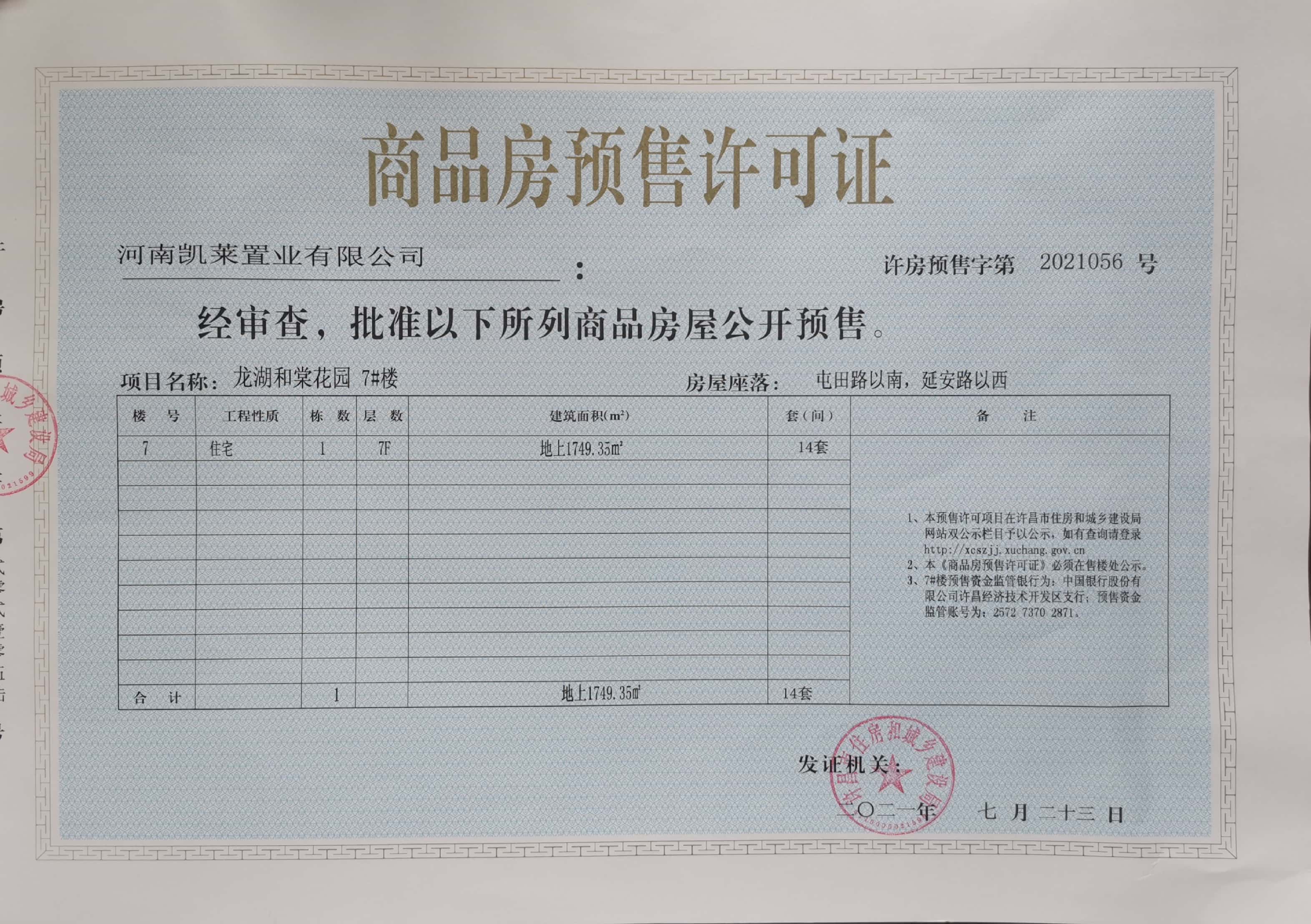 许房预售字第2021056号(河南凯莱置业有限公司)