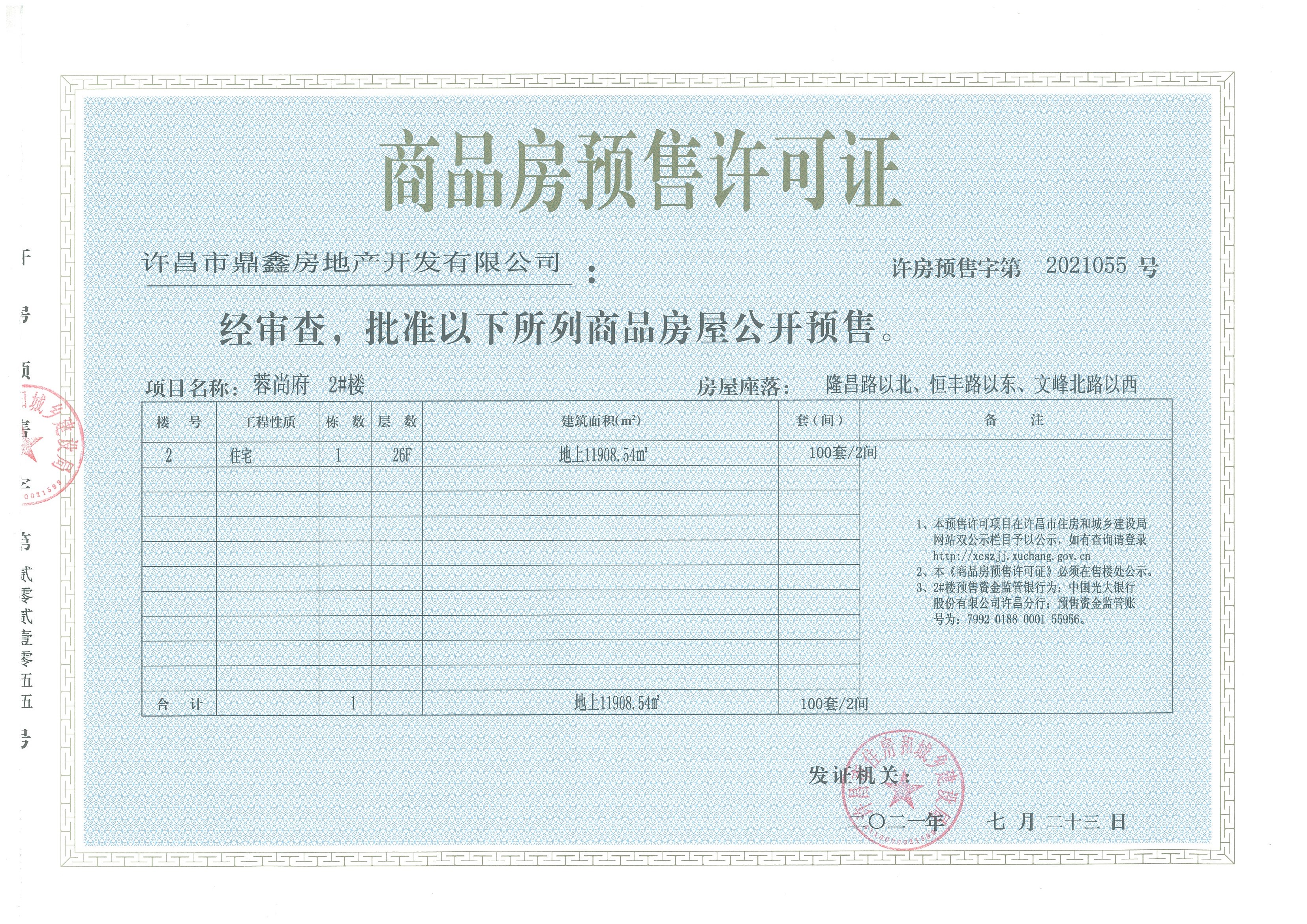许房预售字第2021055号(许昌市鼎鑫房地产开发有限公司)